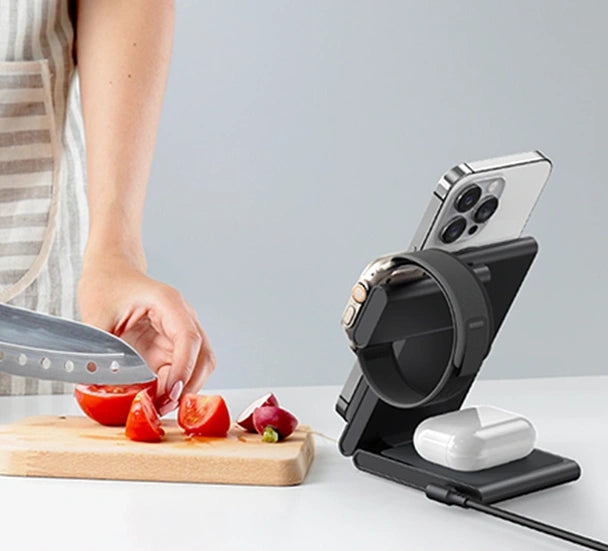 Introducing the FlexCharge Trio, where sleek design meets powerful charging. Its compact form packs a punch, delivering fast charging for your devices without cluttering your space. Experience the pinnacle of charging convenience and elegance.