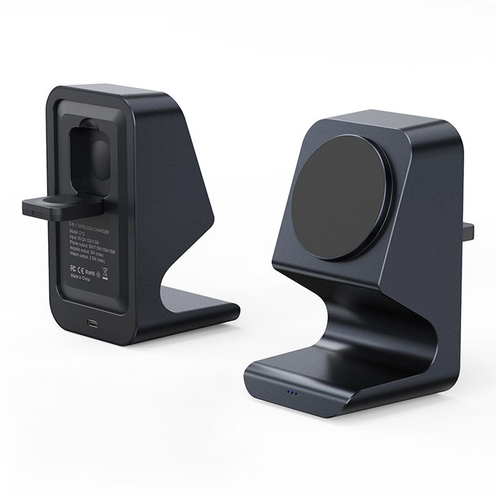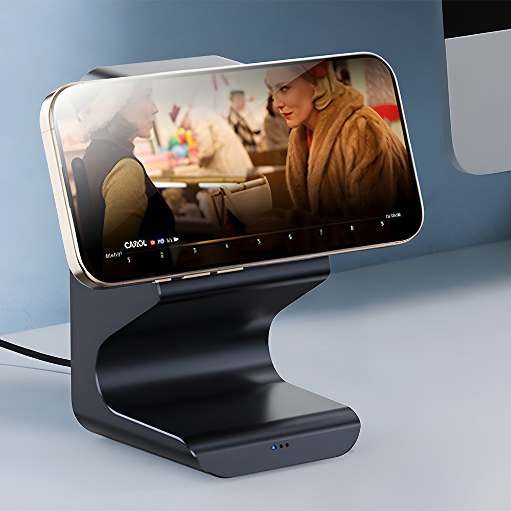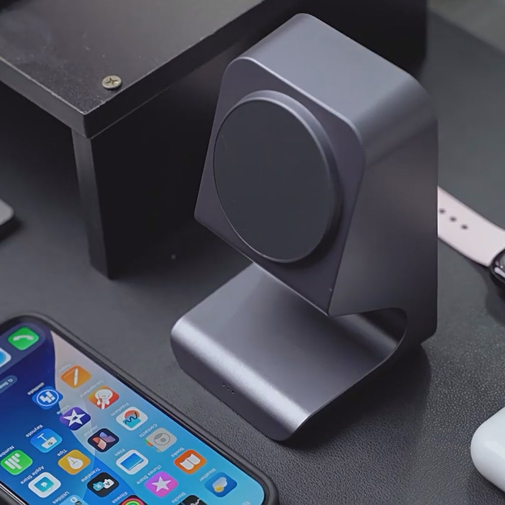 • The Synergy Station 3-in-1 MagSafe Charger declutters your space by charging your iPhone, Apple Watch, and Air Pods simultaneously. With powerful N52 magnets, it securely holds and auto-aligns your iPhone for fast 15W charging. It doubles as an adjustable iPhone stand for comfortable viewing, whether you're working or watching videos. Built with multiple safety protections, it ensures your devices are charged safely all day and night.