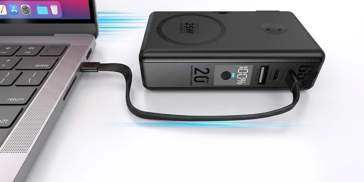Constructed from fire-resistant ABS + PC and featuring advanced GaN fast-charging technology, the JetVolt 65W MagSafe Power Bank combines durability with a lightweight, compact form factor, bringing laptop-level charging to the palm of your hand. Replace your wall charger, magnetic charger, power bank, and laptop adapter with this all-in-one powerhouse serious power, anytime, anywhere.