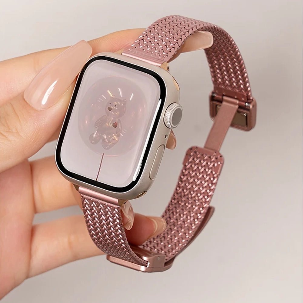 Introducing our Chic Ultra-Thin Stainless Steel Apple Watch Band for Women. Crafted with precision and style in mind, these bands are made from high-quality stainless steel mesh, ensuring durability and comfort. The ultra-thin design adds a touch of elegance to any outfit, while the magnetic strap provides a secure fit that's adjustable to your wrist size. Compatible with various Apple Watch models, these bands offer a perfect blend of style and functionality, making them ideal for everyday wear or special occasions. Treat yourself or your loved ones to the perfect accessory with our stylish and versatile Chic Ultra-Thin Stainless Steel Apple Watchband for Women.