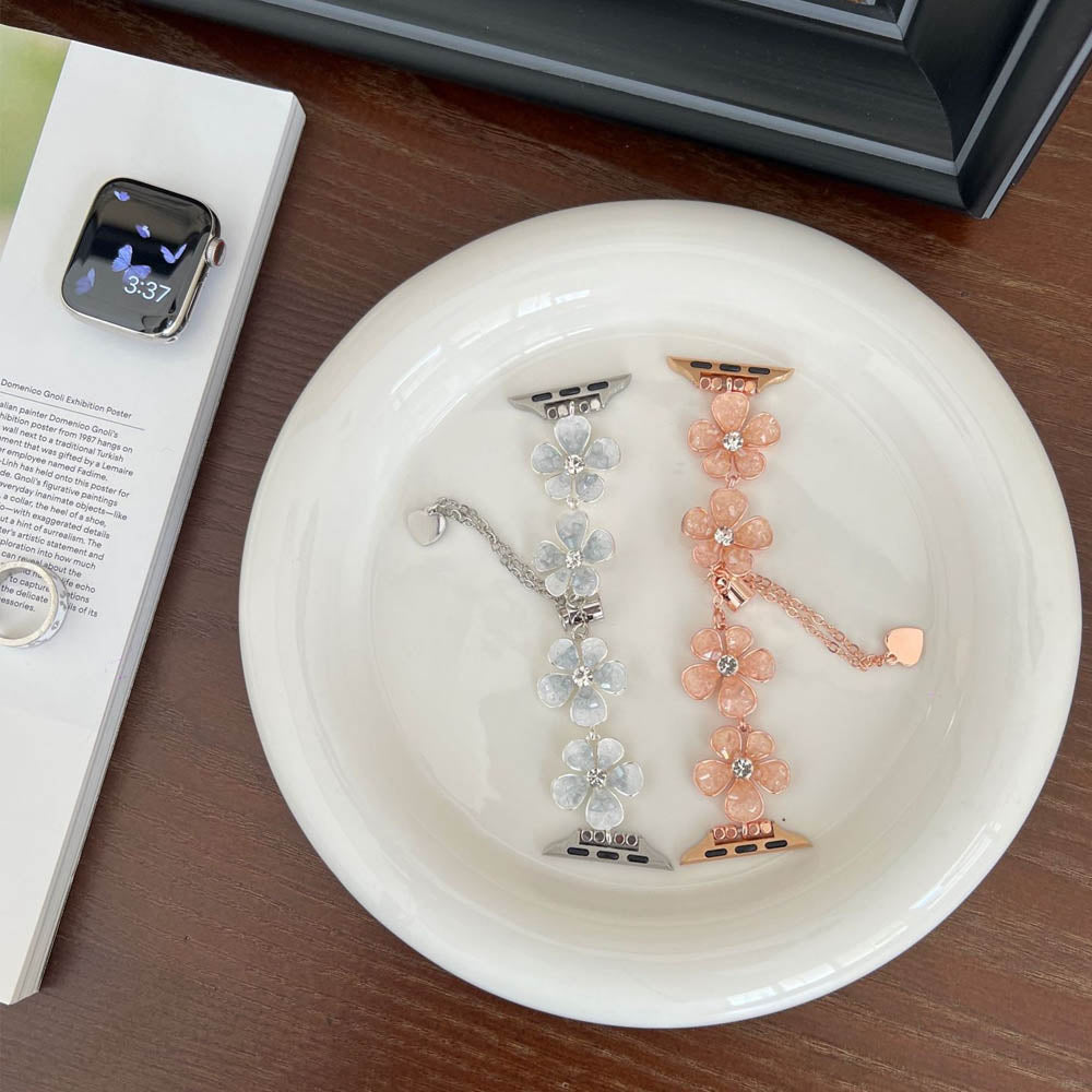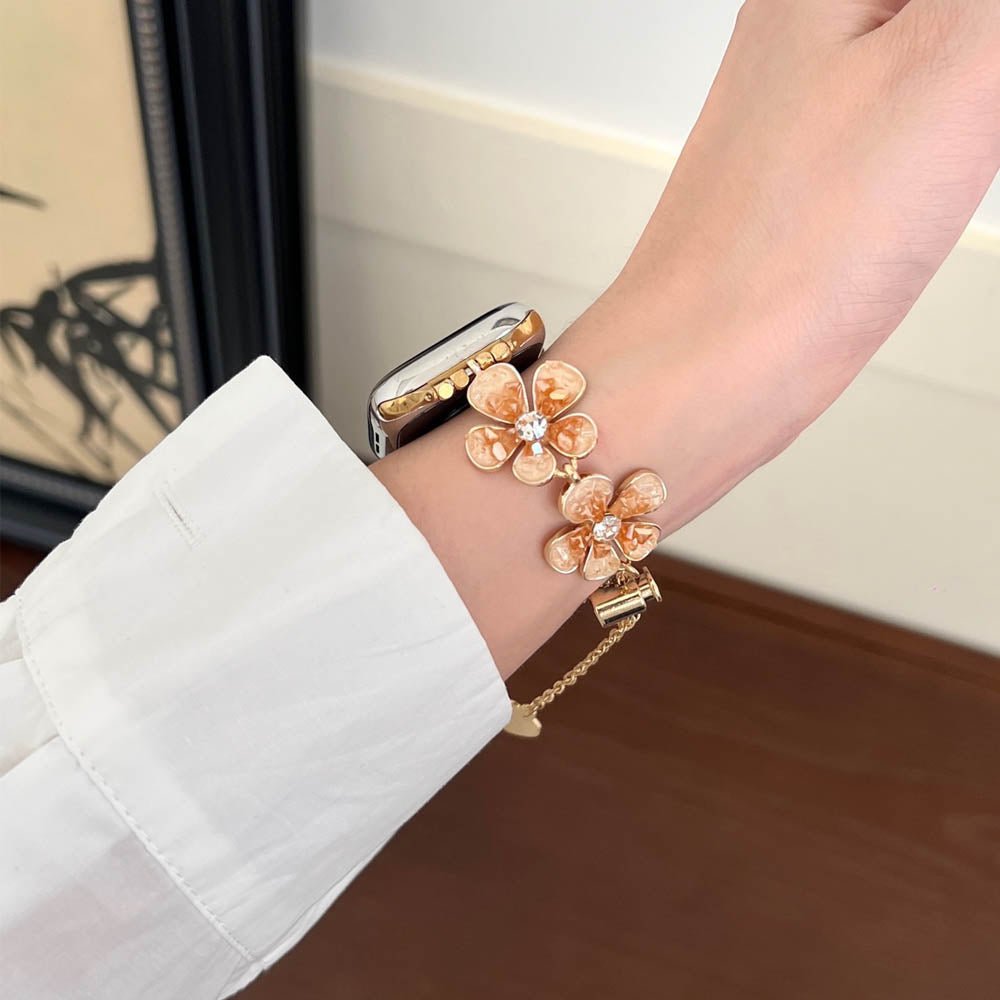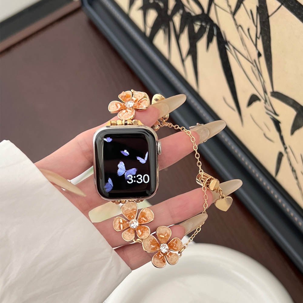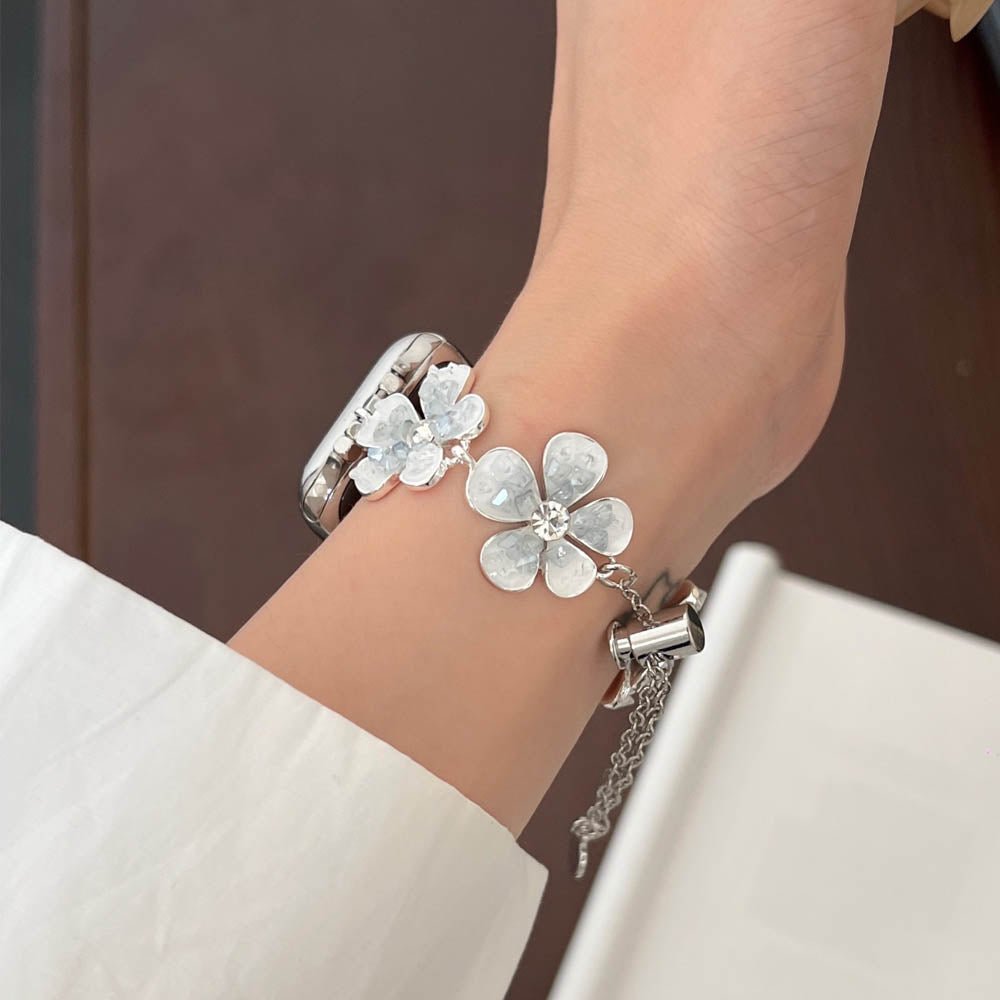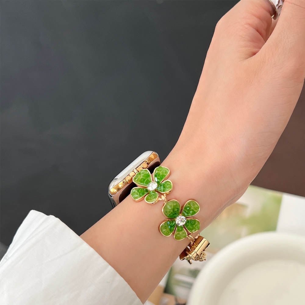 The FloraBella Apple Watch Strap is an enchanting accessory designed to bring a touch of elegance to your smartwatch. With its vibrant floral design, this Apple Watch strap is a standout piece that exudes charm and sophistication. The flowers are crafted from glossy, translucent materials with a striking gemstone center, creating a delicate yet bold visual impact. This strap is ideal for those looking to make a fashion statement with their smartwatch while maintaining comfort and durability. The stainless steel construction ensures longevity, while the lightweight design offers comfortable wear throughout the day. This captivating floral design is the ideal blend of fashion and function, making it a perfect choice for both casual and formal wear.