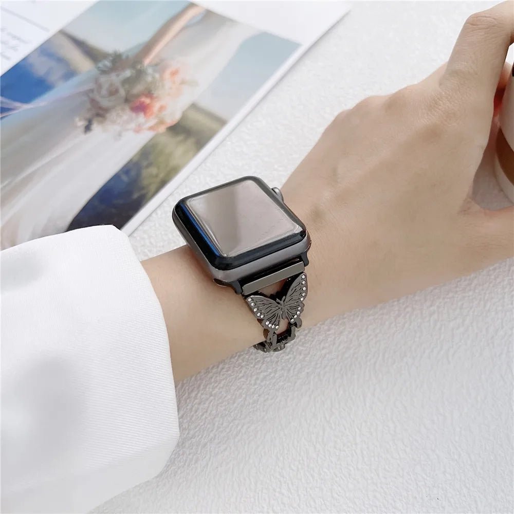 Transform your Apple Watch with the MajesticLuxe Wing Band, crafted from high-grade stainless steel and adorned with dazzling diamond butterflies. Compatible with all Apple Watch models , this band combines elegance and functionality.