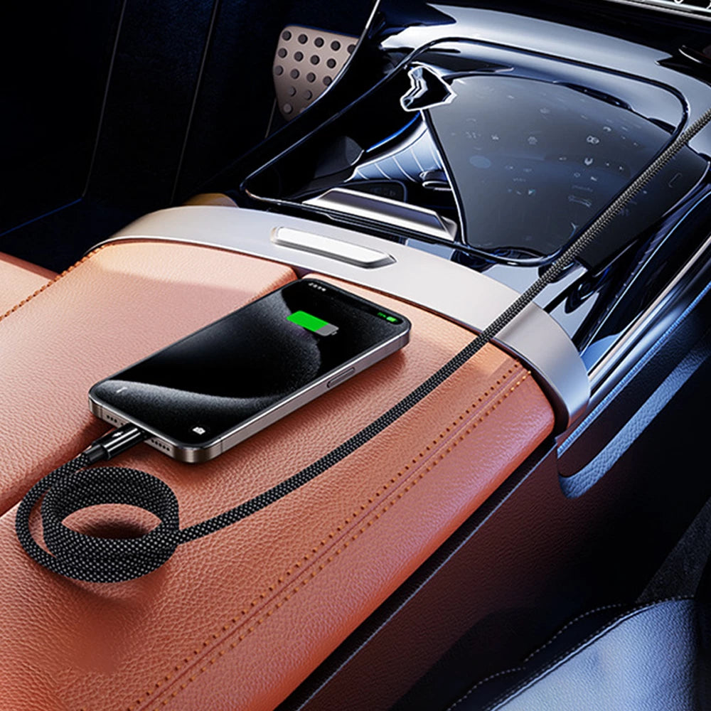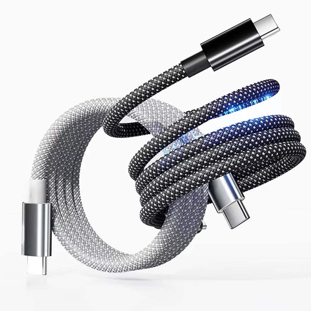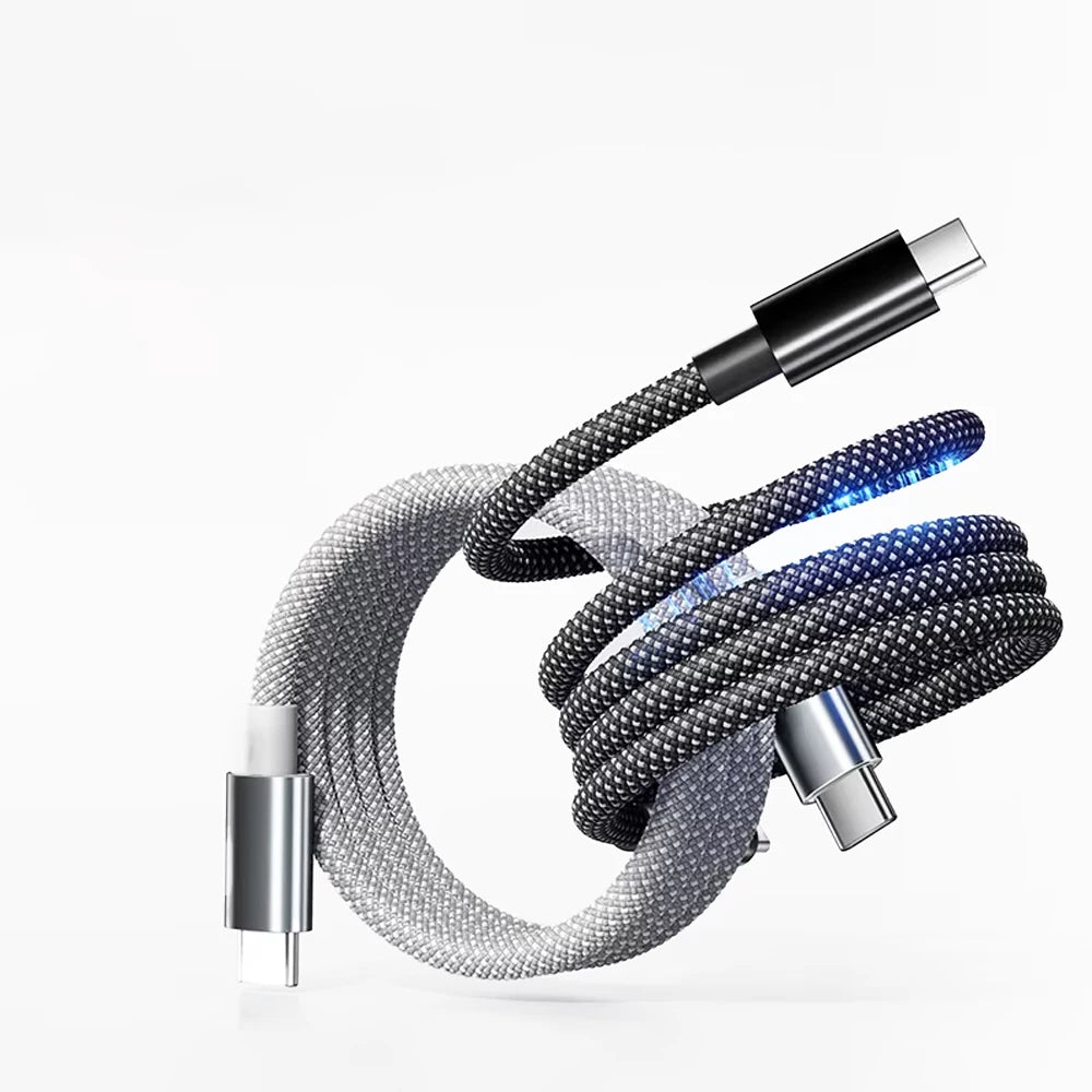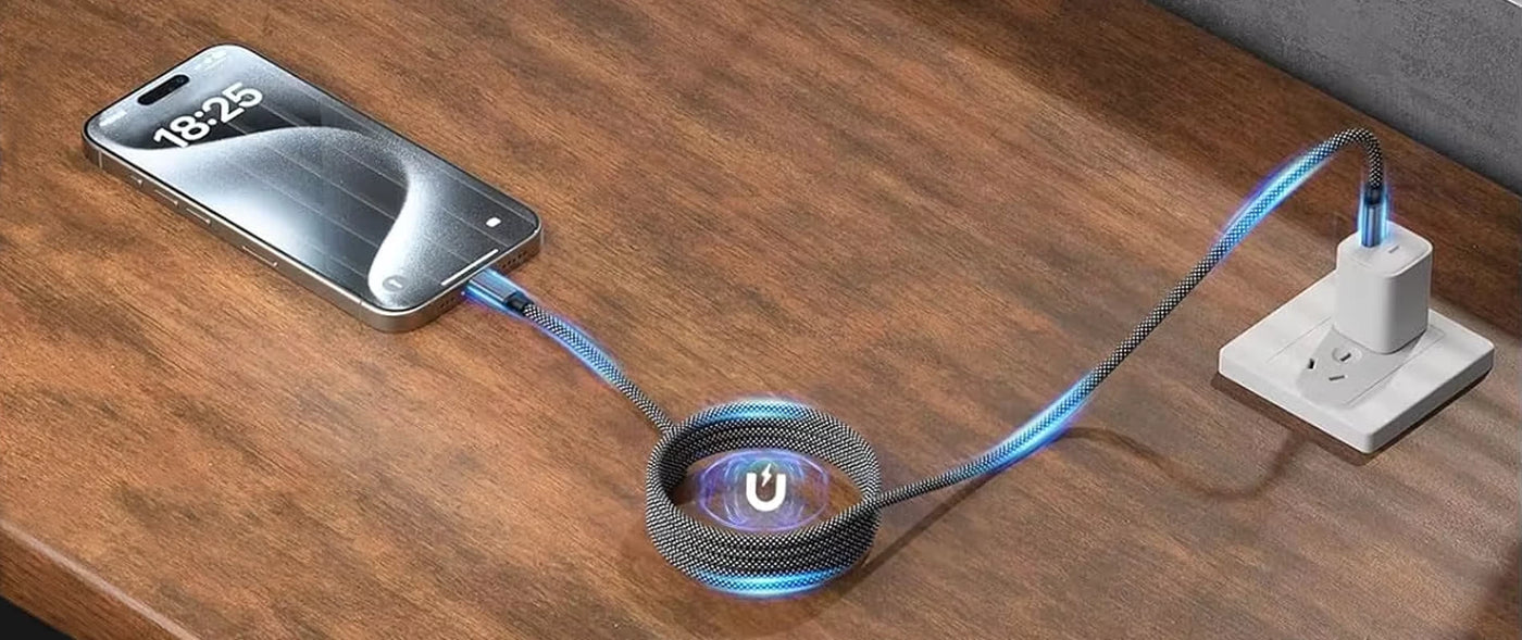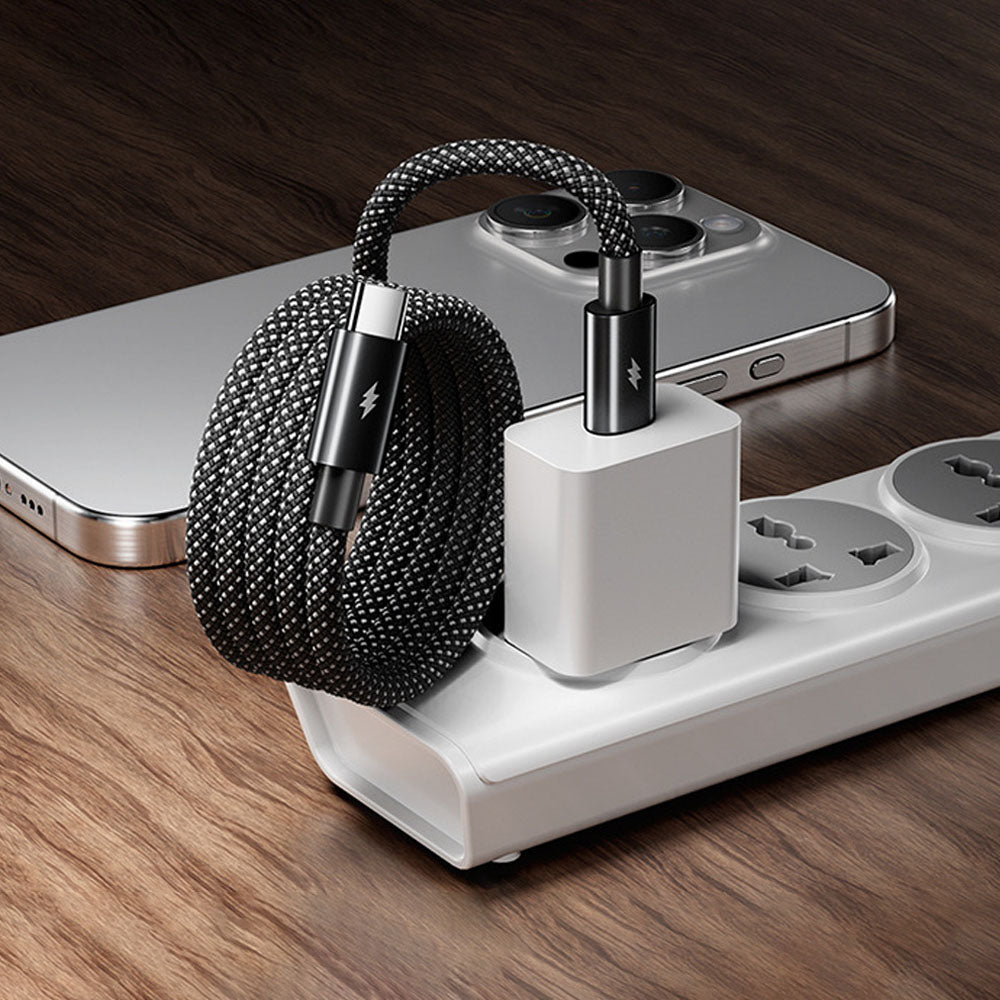 Magnetic, retractable design for instant, tangle-free charging. Compact, durable, and up to 100W fast charging with smart E-MART chip for optimal power and 480Mbps data transfer.