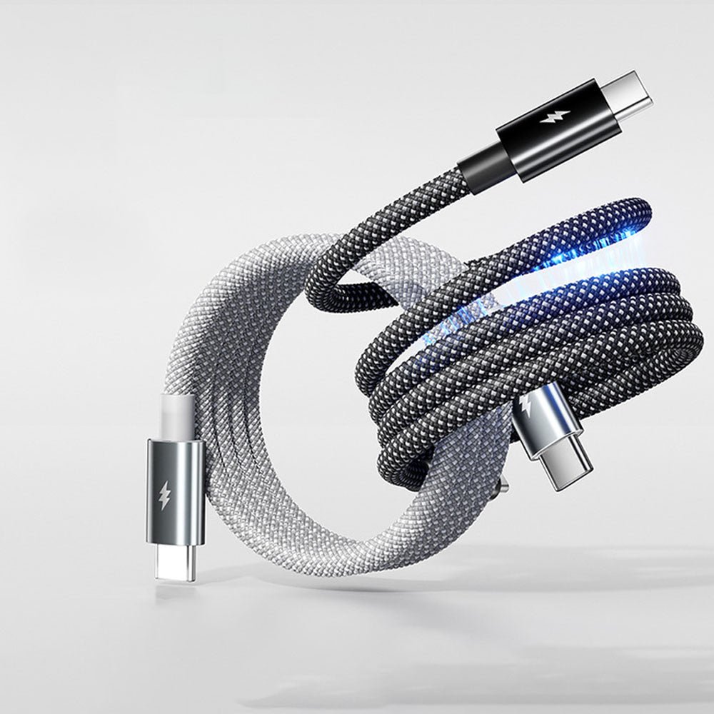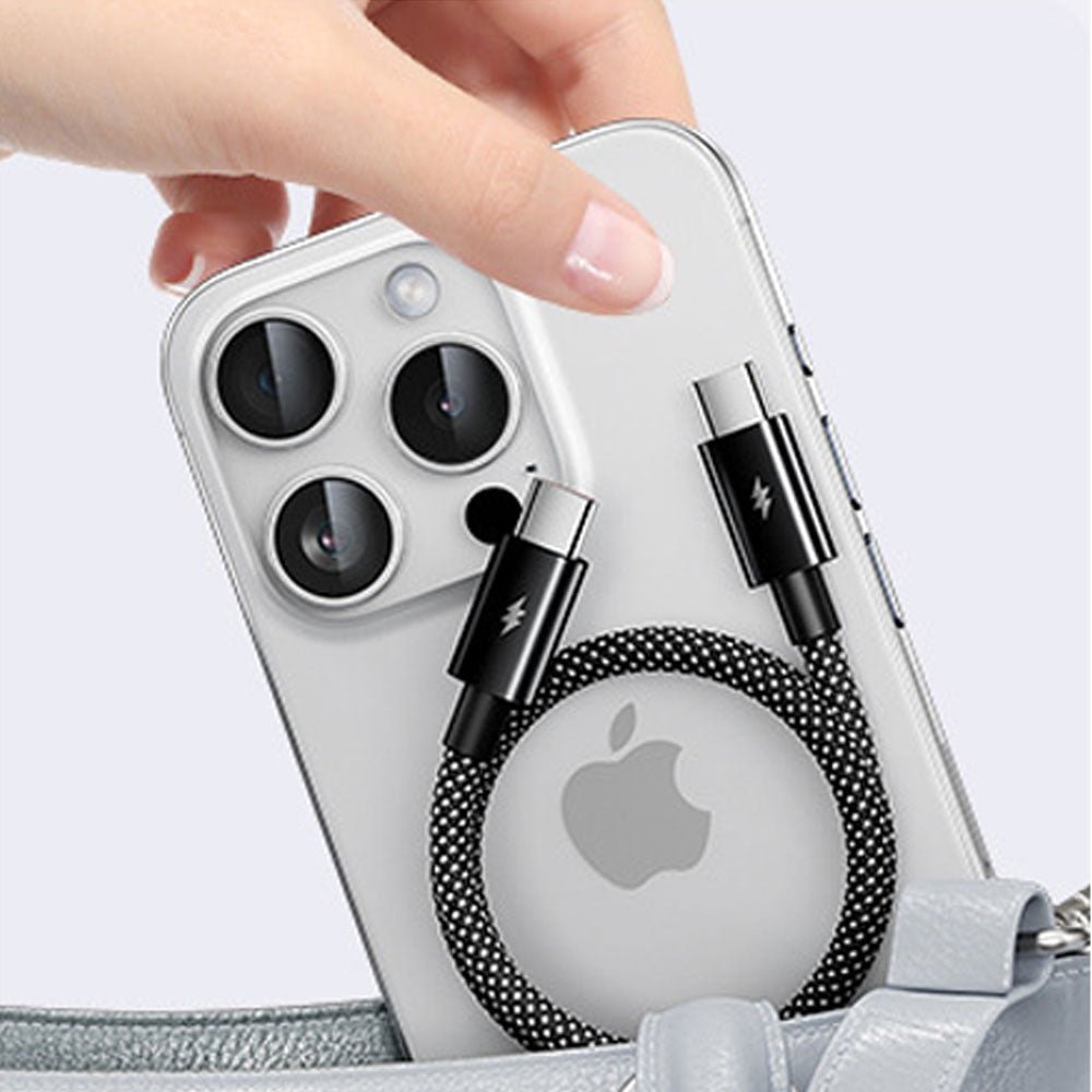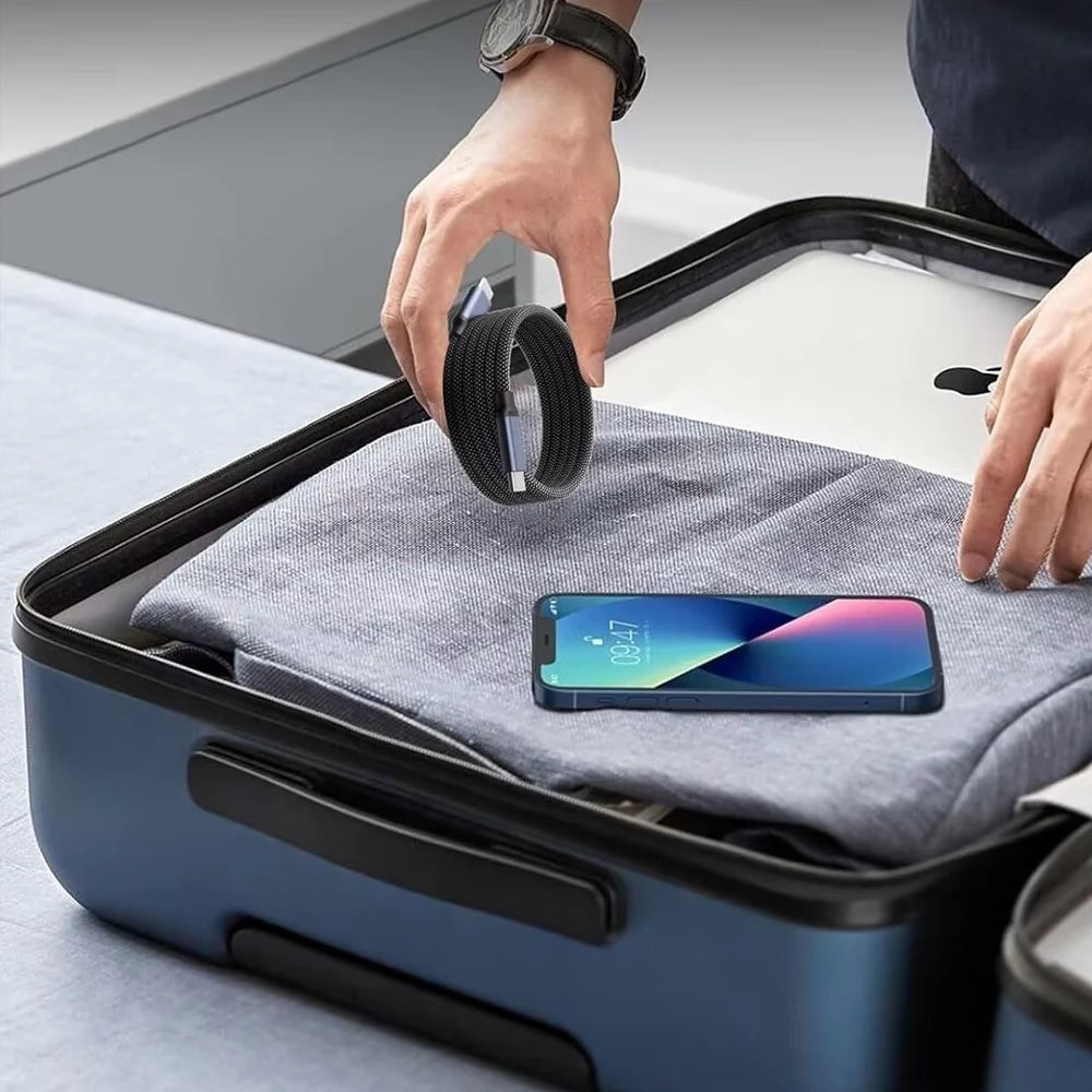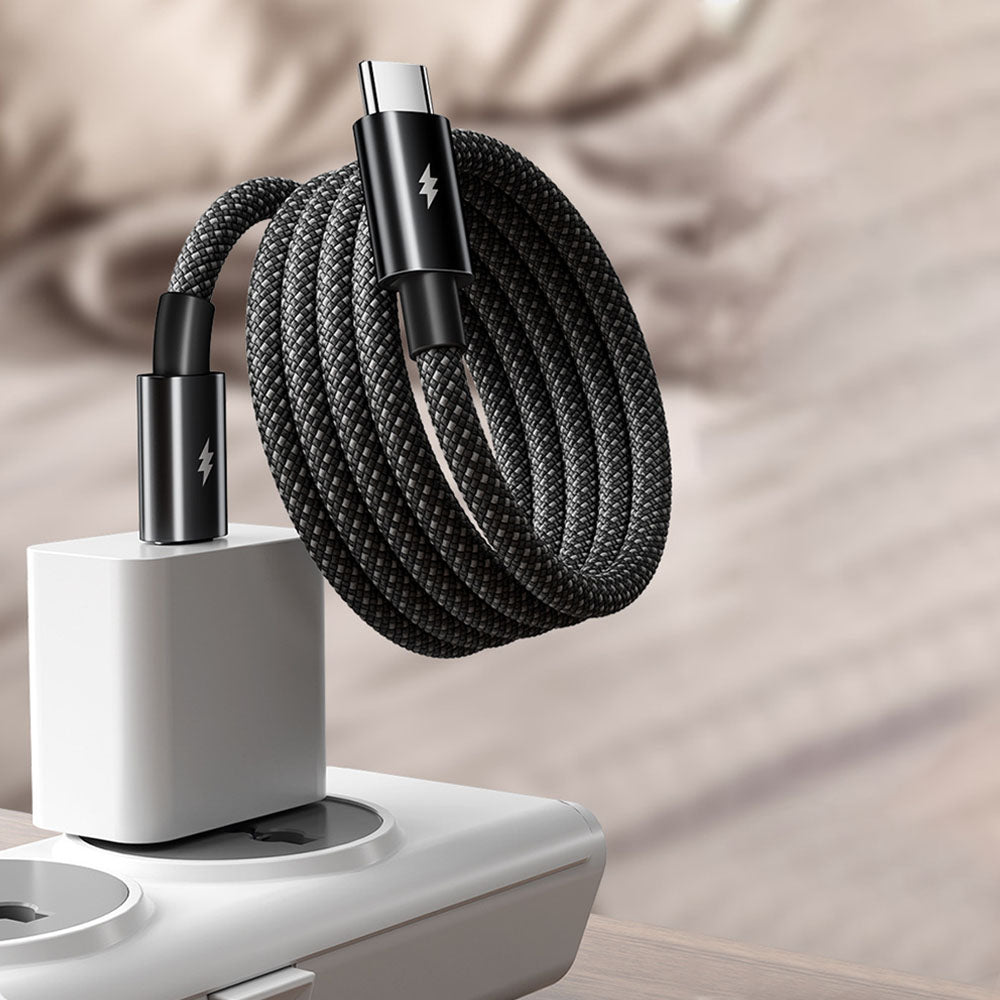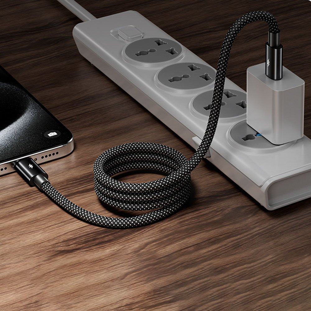 Magnetic, retractable design for instant, tangle-free charging. Compact, durable, and up to 100W fast charging with smart E-MART chip for optimal power and 480Mbps data transfer.