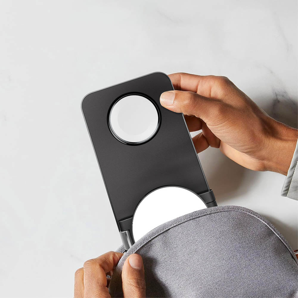 Introducing the ArcFold 3-in-1 MagSafe Charger. Its slim and foldable design makes it compact and highly portable, making it ideal for those on the go. The charger supports magnetic cases, allowing for seamless charging even when your device is in a case, with an inductive charging distance of 1-6mm(0.4-2.4in). Constructed from sturdy, stylish materials, the ArcFold 3-in-1 MagSafe Charger ensures fast heat dissipation and high charging efficiency. This 3-in-1 wireless charger features strong magnetic attraction, providing secure and reliable charging for your devices. Its foldable design allows you to charge from multiple angles, ensuring you can find the most convenient position for your needs. With its small size, portability, and reliable performance, this charger is the perfect companion for anyone seeking convenience, speed, and style in their charging solutions.