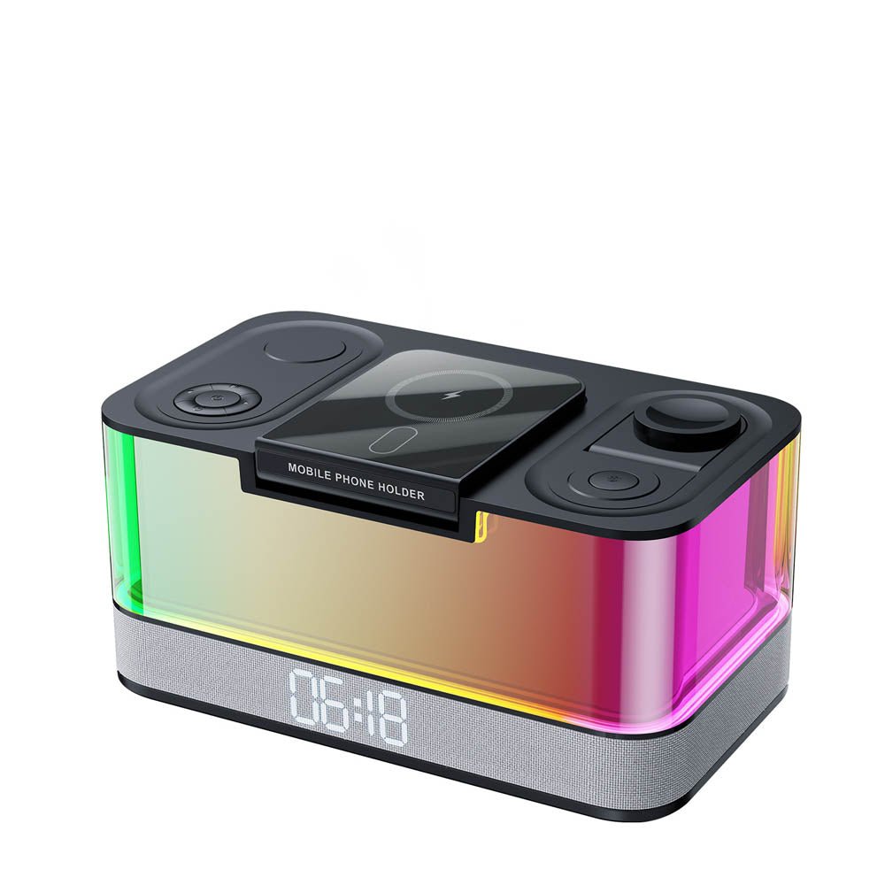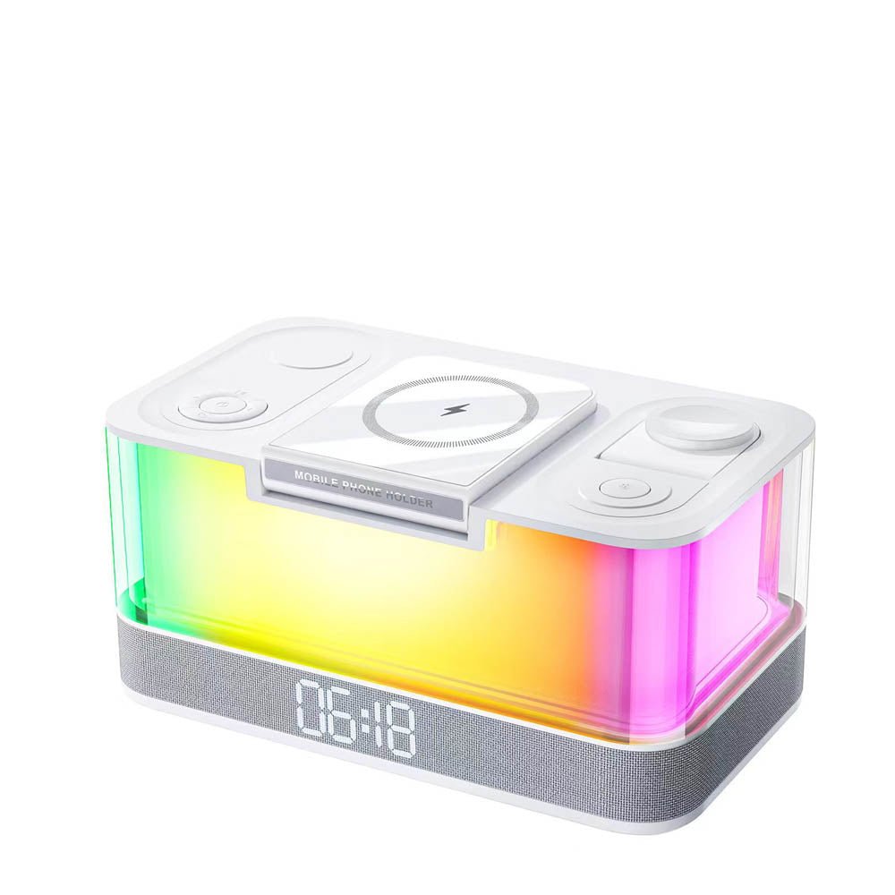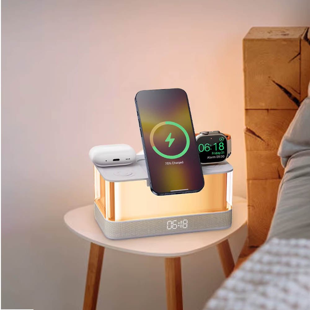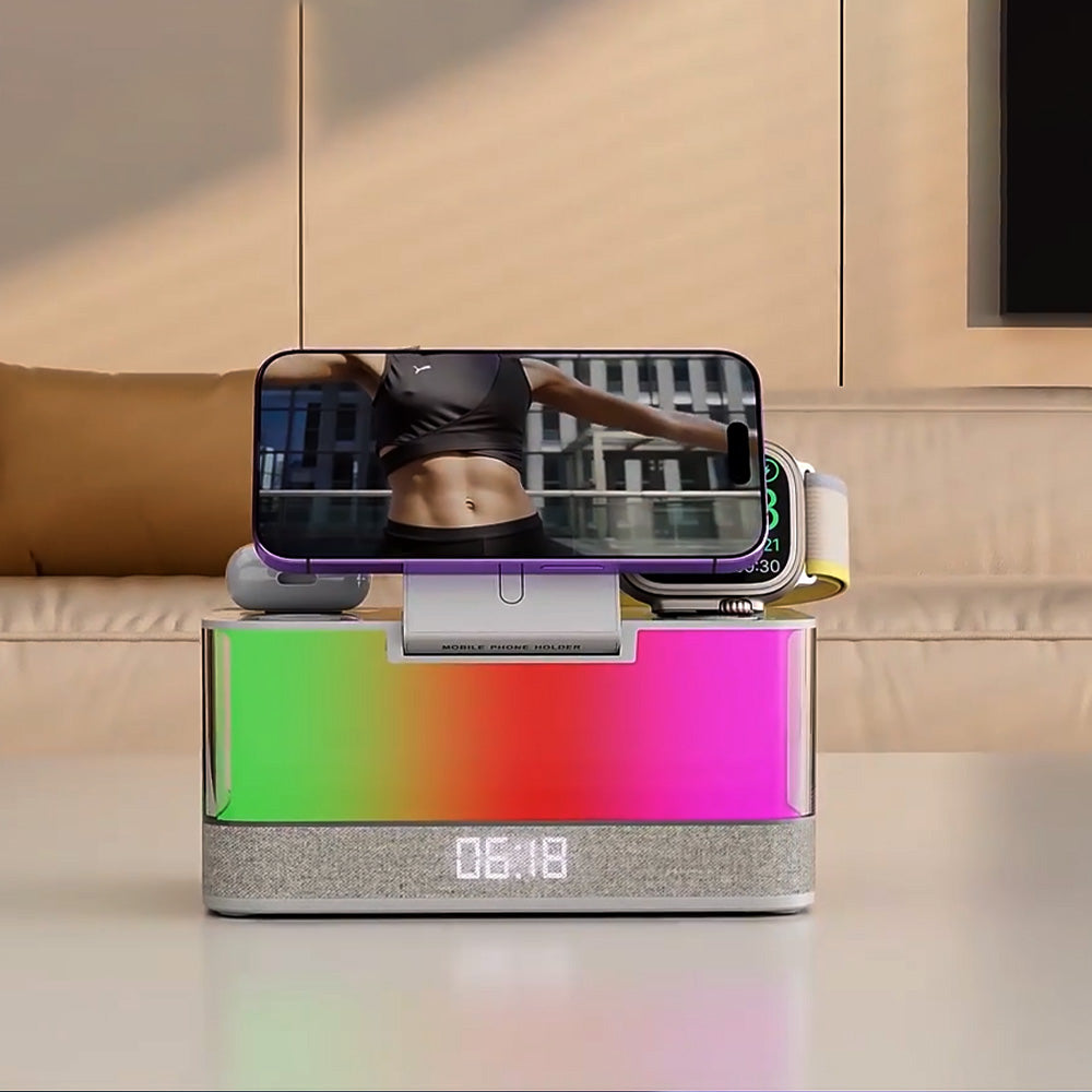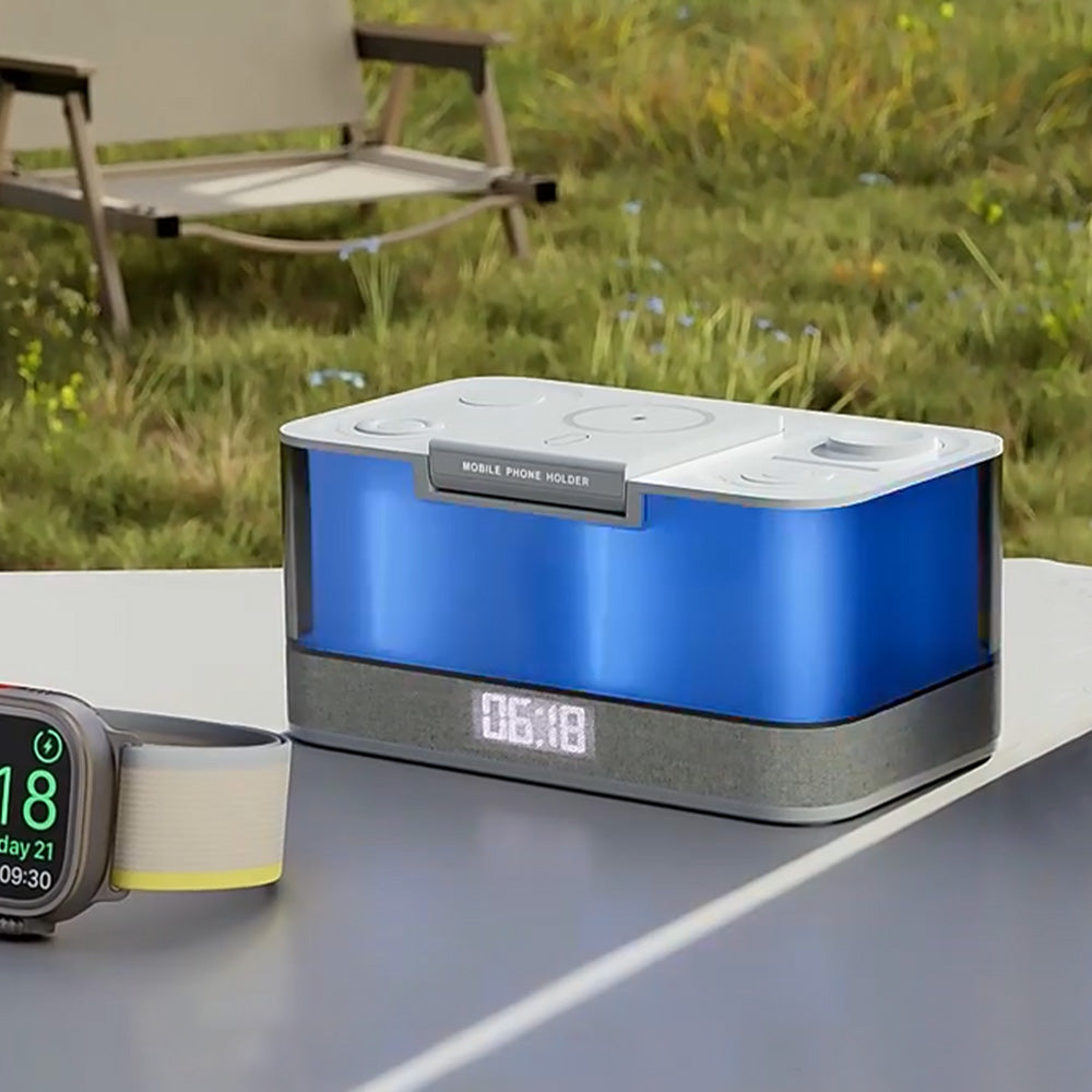 Combine fast charging, a digital clock, and 360° sound with a stunning fabric finish and foldable stand—crafted to power your devices and elevate your lifestyle.