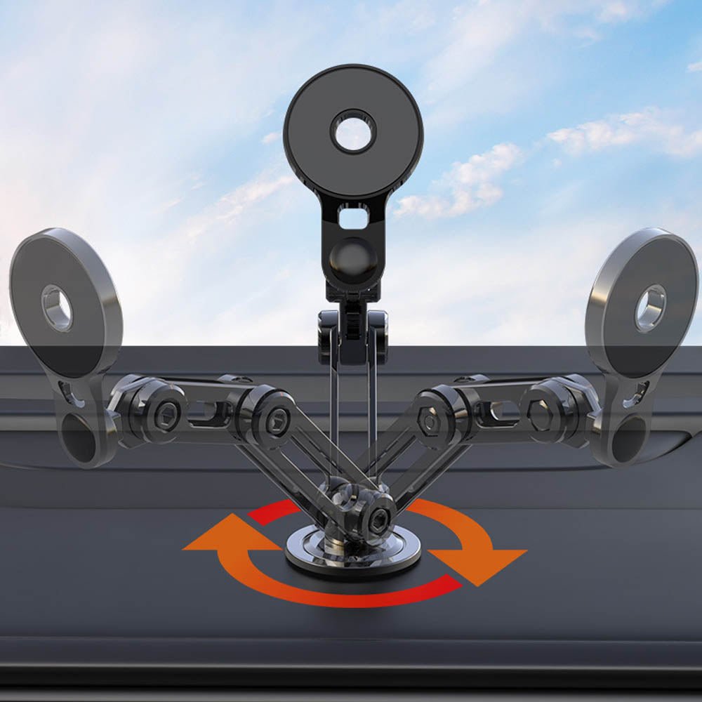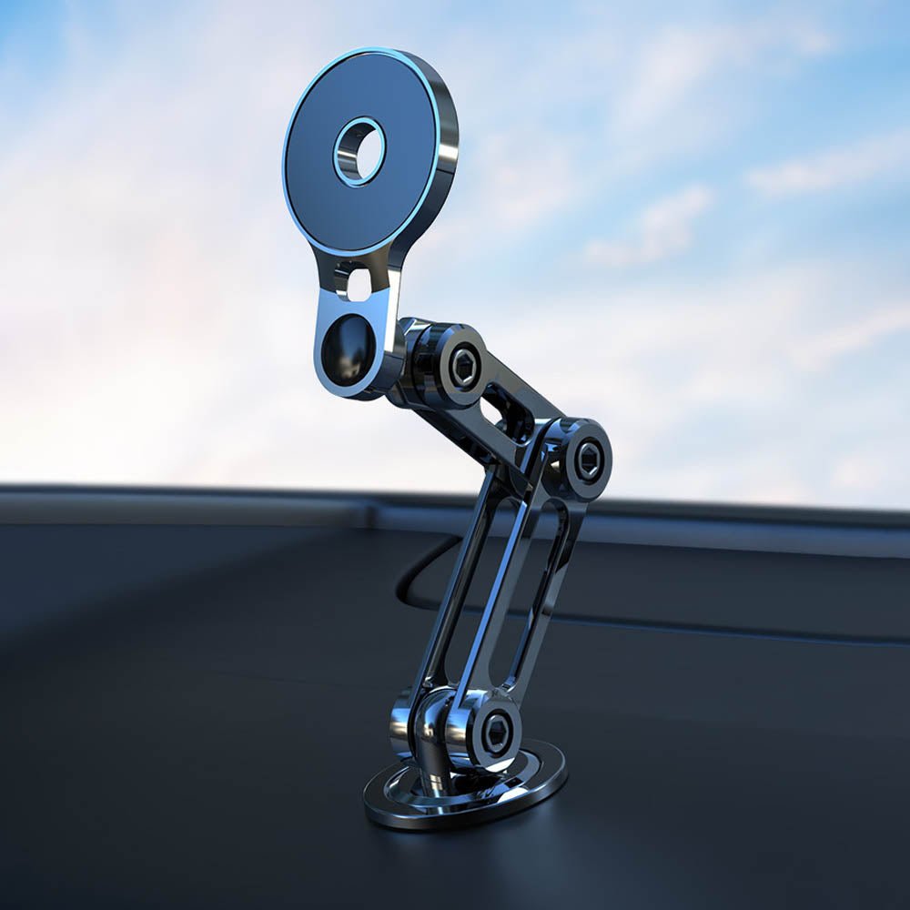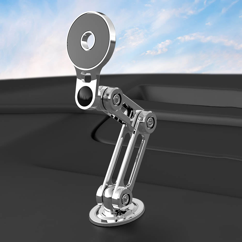 • Introducing the GripMate 360 Universal iPhone Stand, a state-of-the-art phone holder designed for versatility, durability, and convenience. Made with high-end, anti-oxidation materials, this phone mount offers exceptional stability and flexibility, making it the perfect companion for any driving or leisure activity. Equipped with a mechanical damping rotating base, the GripMate 360 Universal iPhone Stand allows for precise and free adjustment, whether you're navigating while driving or watching TV series in your downtime. The 4-axis linkage system ensures smooth adjustments without obstructing your view, and multiple rotating nodes give you the flexibility to position your phone exactly where you need it. The mount uses a nano-primer adhesive that securely adheres to surfaces and leaves no residue when removed. With 6 strong magnets to keep your device securely in place, eliminating abnormal noise during use. The Zinc Alloy Electroplating Process ensures the mount is not only durable but also resistant to wear and tear, maintaining its sleek appearance over time.