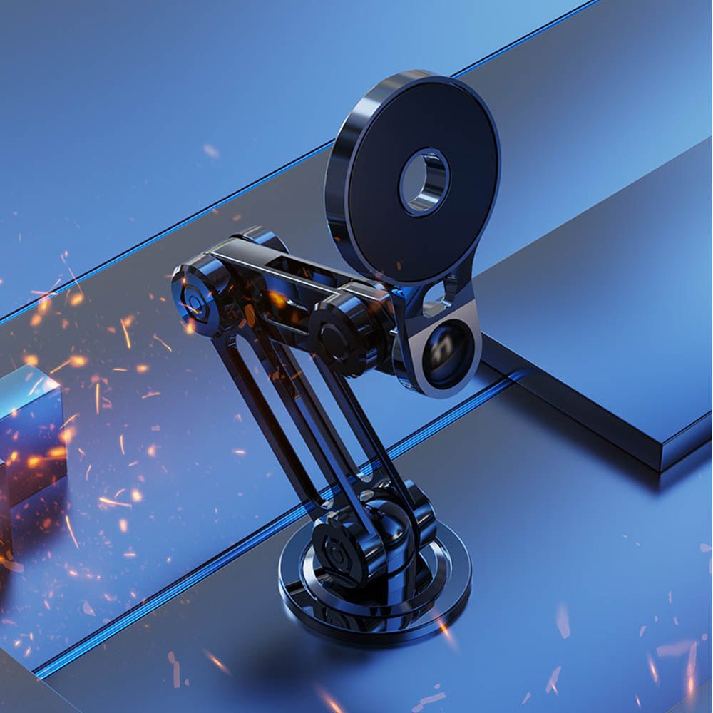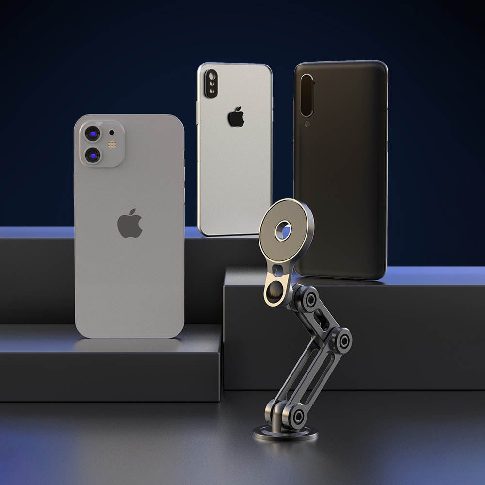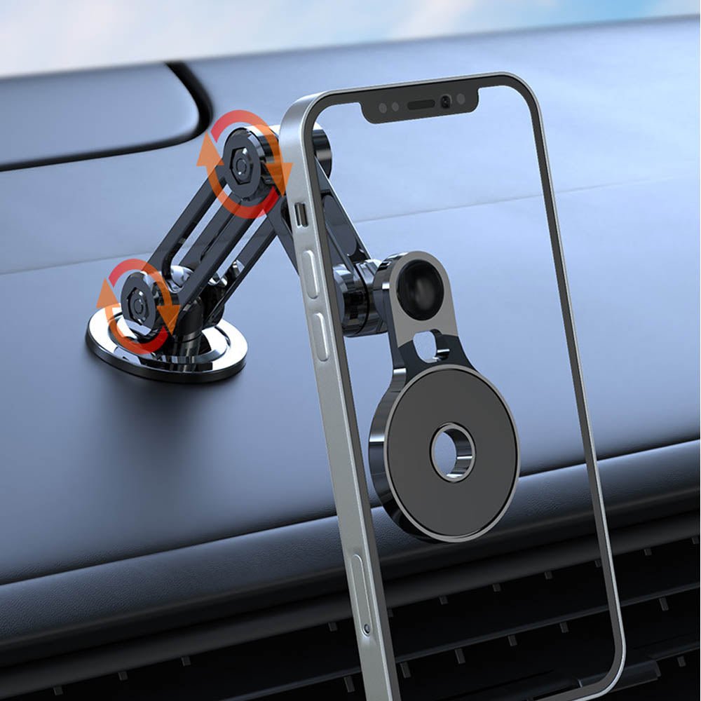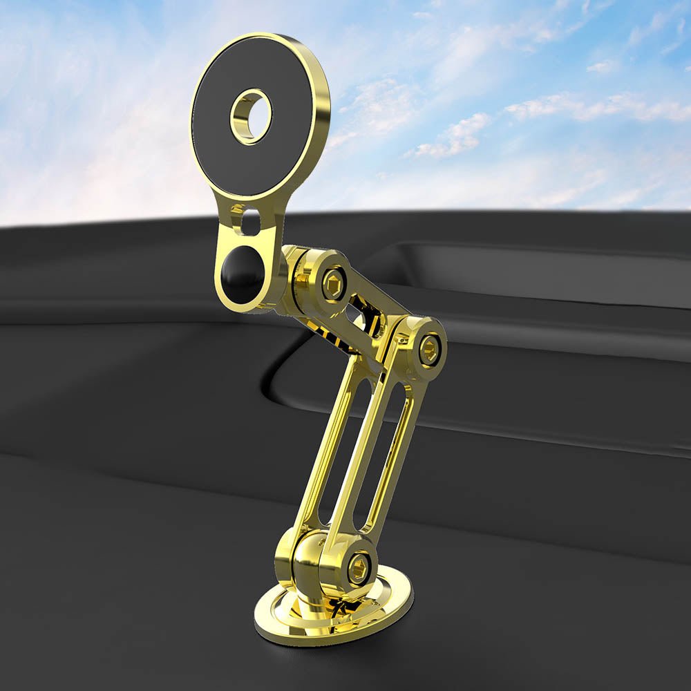 • Introducing the GripMate 360 Universal iPhone Stand, a state-of-the-art phone holder designed for versatility, durability, and convenience. Made with high-end, anti-oxidation materials, this phone mount offers exceptional stability and flexibility, making it the perfect companion for any driving or leisure activity. Equipped with a mechanical damping rotating base, the GripMate 360 Universal iPhone Stand allows for precise and free adjustment, whether you're navigating while driving or watching TV series in your downtime. The 4-axis linkage system ensures smooth adjustments without obstructing your view, and multiple rotating nodes give you the flexibility to position your phone exactly where you need it. The mount uses a nano-primer adhesive that securely adheres to surfaces and leaves no residue when removed. With 6 strong magnets to keep your device securely in place, eliminating abnormal noise during use. The Zinc Alloy Electroplating Process ensures the mount is not only durable but also resistant to wear and tear, maintaining its sleek appearance over time.