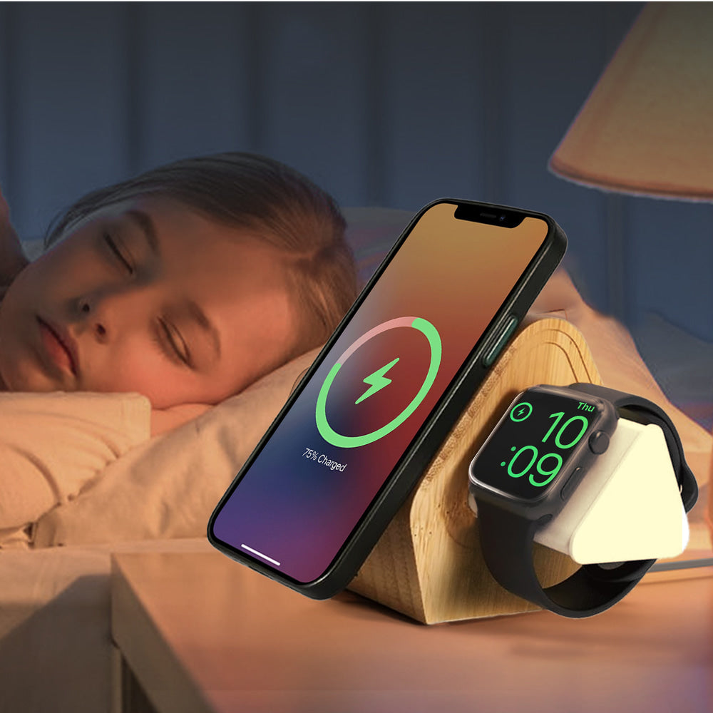 Keep your space clutter-free with a discreet slide-out dock and enjoy a calming glow that makes it perfect for nightstands or workspaces.