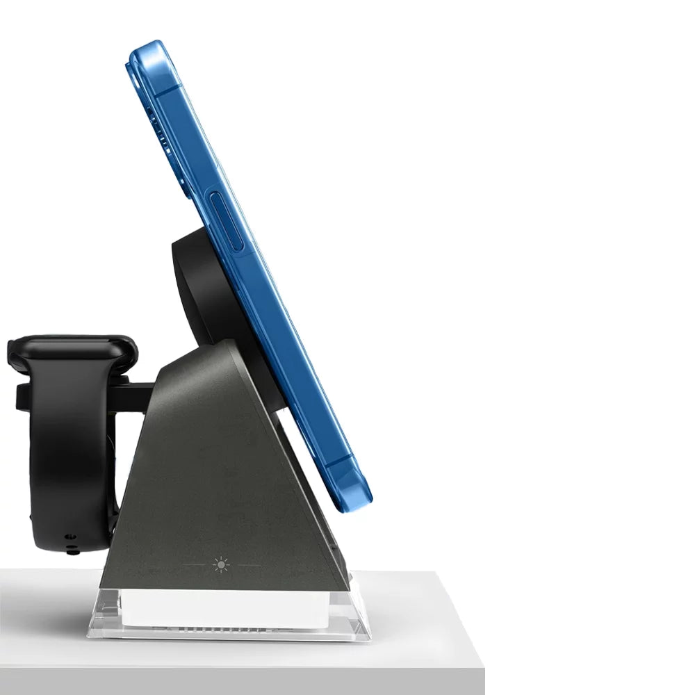 Simultaneously power up your iPhone, Apple Watch, and AirPods with ease. No more tangled cables or juggling multiple chargers—just place your devices on the PowerTrio Plus and go about your day hassle-free.