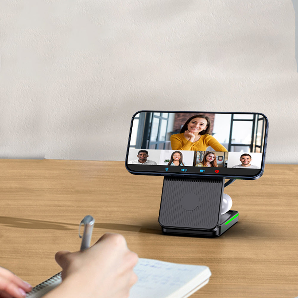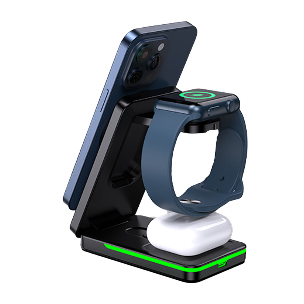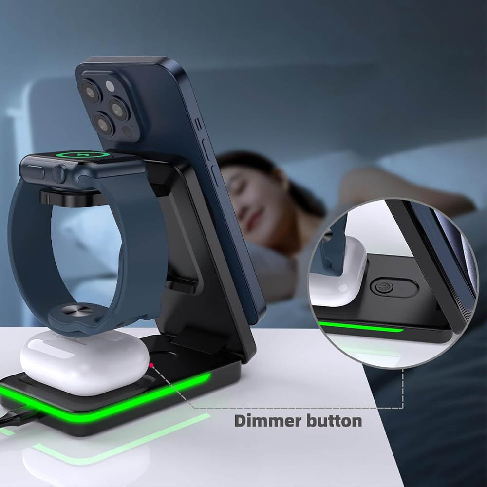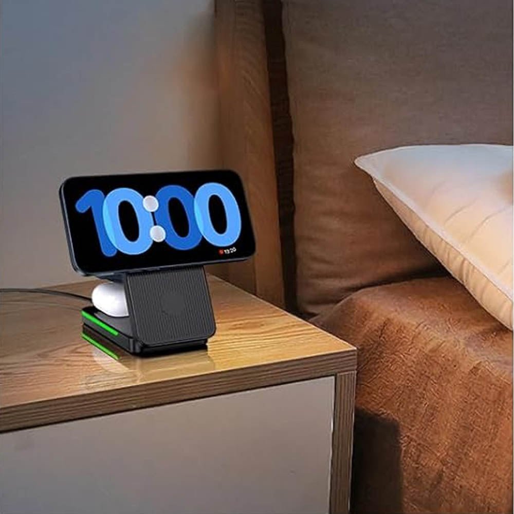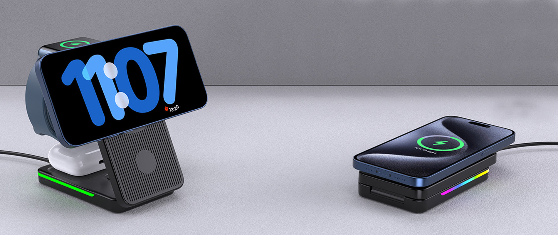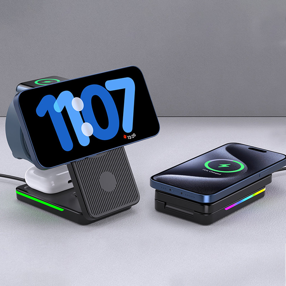Declutter with a charger that powers it all and lights up your desk or nightstand with vibrant RGB hues