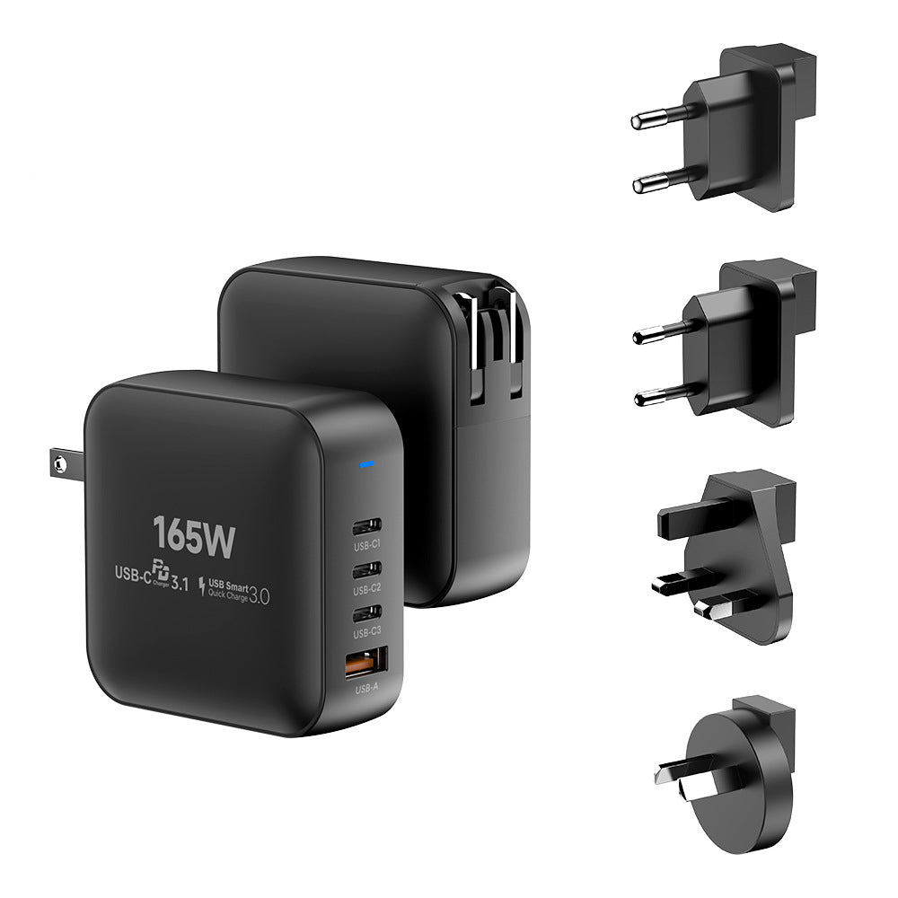 • Introducing the 165W Turbo Charger – a powerful charging solution designed for speed and efficiency. With an impressive 165W maximum output and support for 4 ports, this charger is perfect for rapidly powering up multiple devices simultaneously. It supports fast charging via the PD (Power Delivery) protocol, ensuring your gadgets are charged quickly and safely. The USB interface offers direct charging compatibility with a variety of devices, while the compact design makes it easy to carry on the go. Plus, with swappable ends, it’s ideal for travel, allowing you to easily switch connectors to suit your needs.