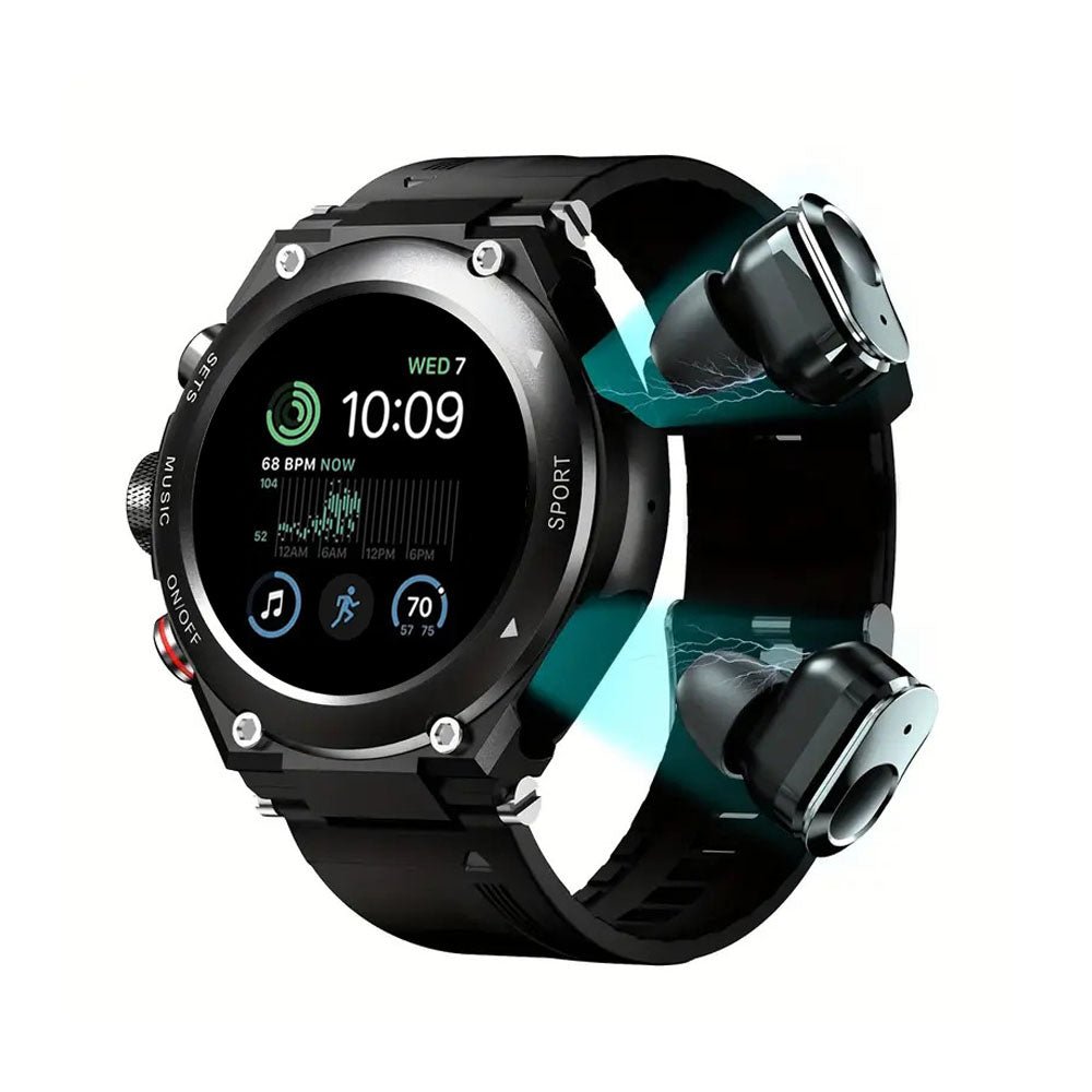 The AirCore Pro 2-in-1 Smart Watch combines a smartwatch, music player, and wireless earbuds in one portable device. It features a 1.28" HD touch display, immersive 9D sound, and seamless Bluetooth calling. With built-in health monitoring for blood oxygen, blood pressure, and body temperature, it keeps you informed with real-time alerts. The watch also stores and charges earbuds, offers local MP3 playback, and supports Bluetooth music streaming. Perfect for active lifestyles, it’s your all-in-one fitness and entertainment companion.