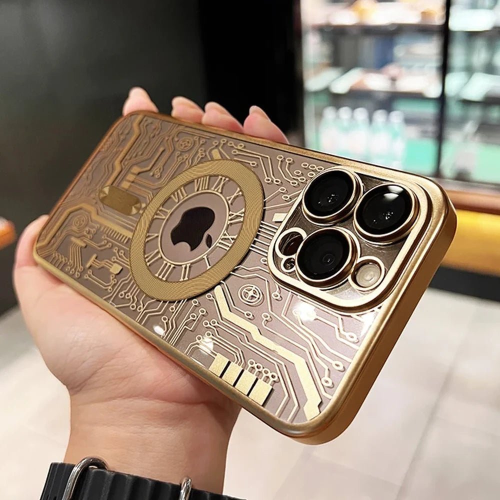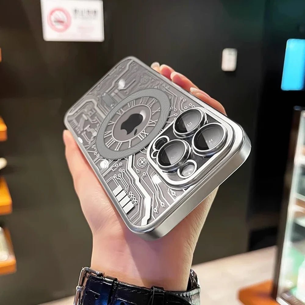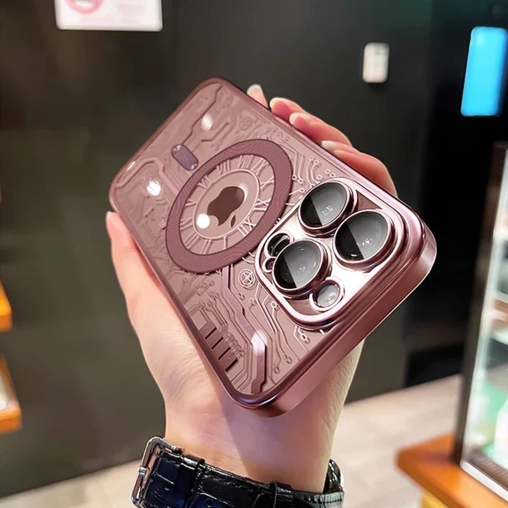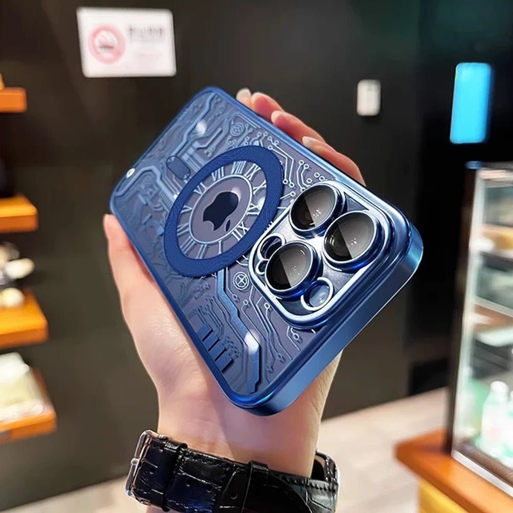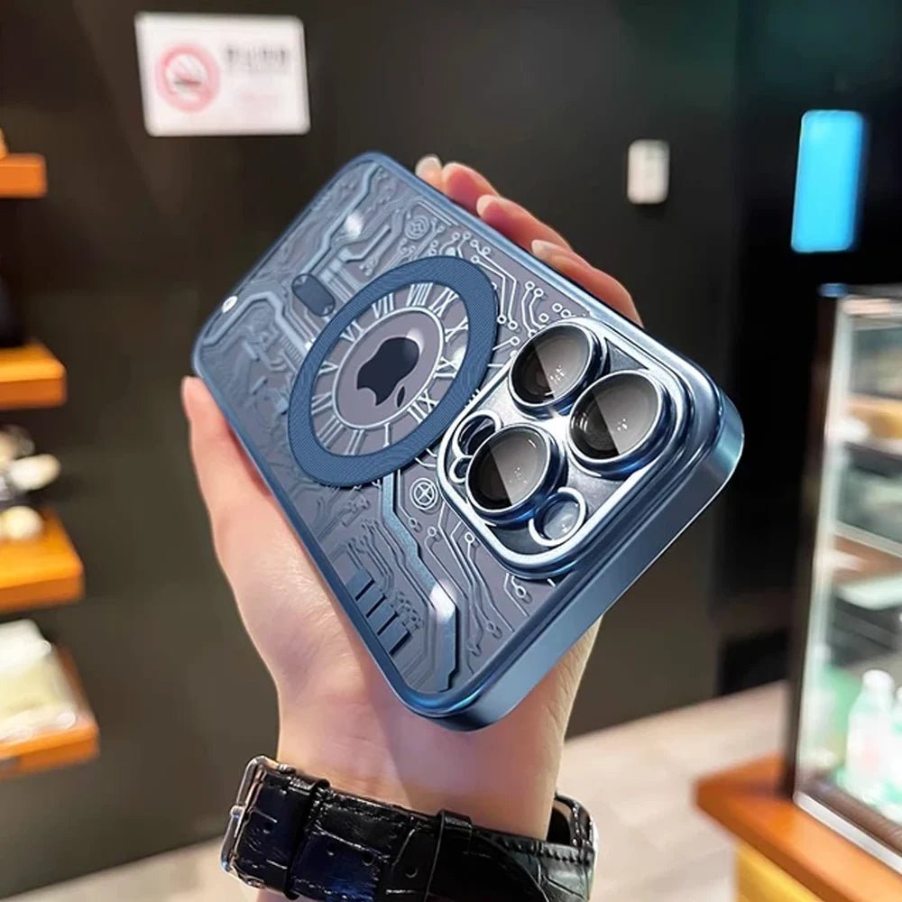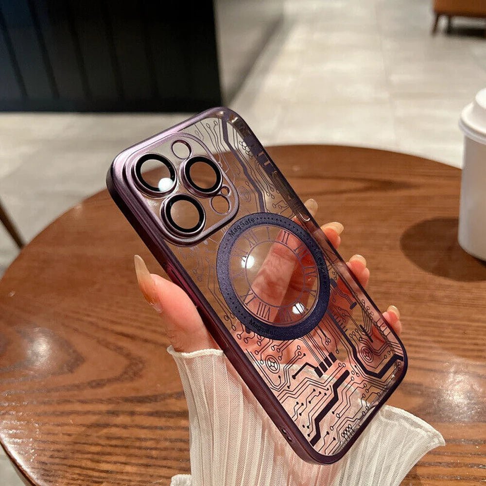 • Introducing the CircuitArmor MagSafe iPhone Case - a stylish and protective case with a sleek circuit pattern design. The case has a slim profile and lightweight build that ensures reliable defense against scratches and drops without adding bulk. It features a 0.3mm raised frame that provides enhanced protection for your phone's camera lens and screen, and an integrated dustproof net to prevent dust from entering the interior. The case also has built-in military-grade magnets that support high-speed 15W charging without the need for case removal, and a precisely cut-out design that ensures easy access to all buttons and ports.
