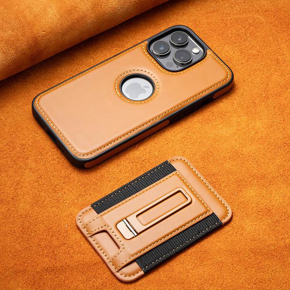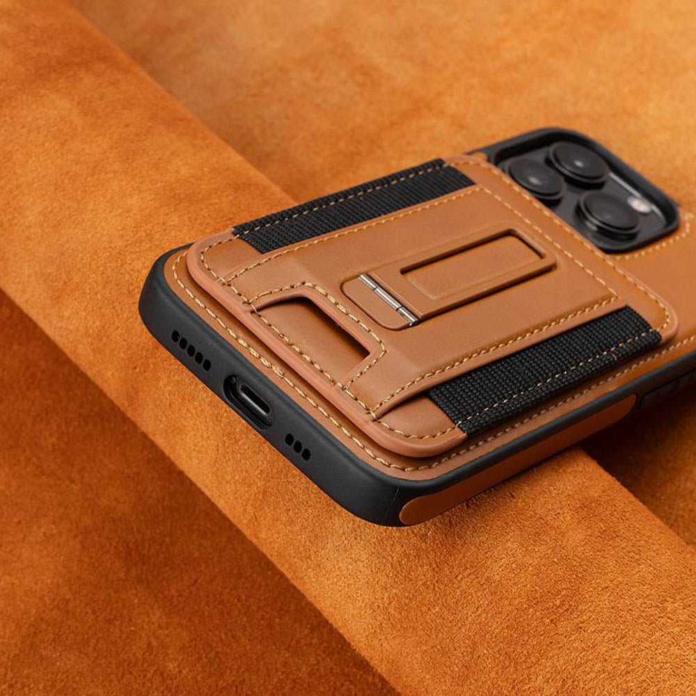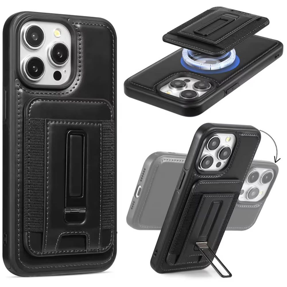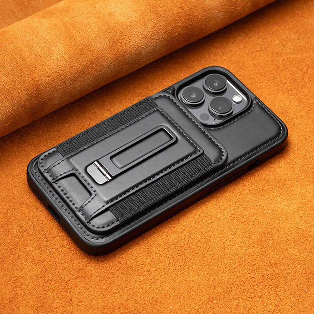 • Introducing the GripLex MagSafe Wallet iPhone Case, crafted from high-quality vegan leather, this case offers a sleek, professional look with a business-inspired, simple design. The case features an embossed texture that adds a premium touch, while the integrated magnetic bracket provides enhanced functionality, allowing for hands-free use of your phone. The sturdy MagSafe-compatible magnetic element ensures secure attachment without compromising convenience, making it perfect for use with magnetic car mounts and stands. In addition to its sleek design, the GripLex MagSafe Wallet iPhone Case comes with a built-in MagSafe card holder, securely attached to the case. This card holder adds a practical layer to the case, allowing you to conveniently store essential cards without the need for an additional wallet. The case is designed with versatility in mind, fitting snugly while providing easy access to all ports and buttons. Its compact design doesn’t block the camera and ensures your phone remains slim and easy to handle, making it the perfect combination of style, convenience, and functionality.
