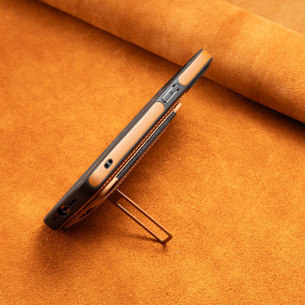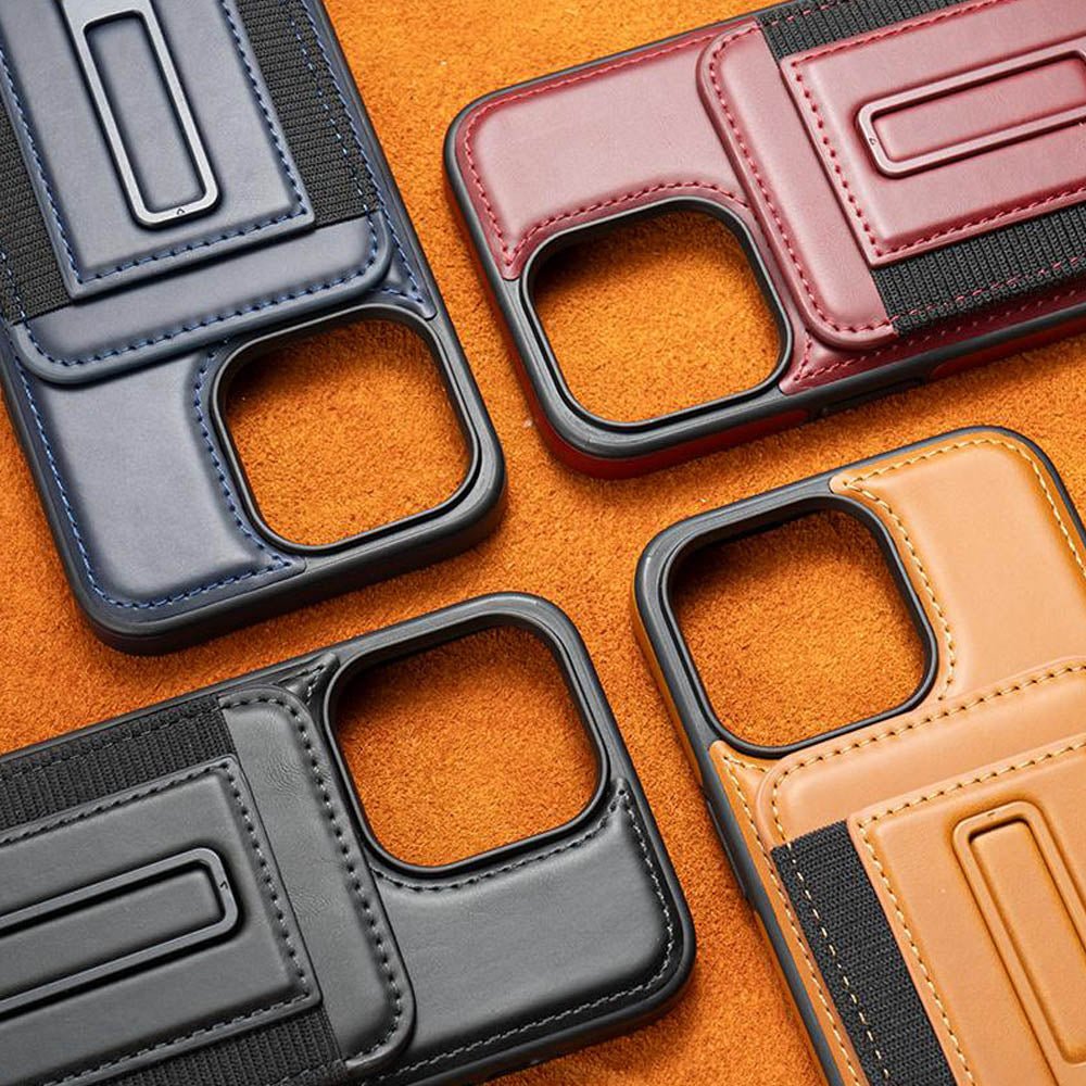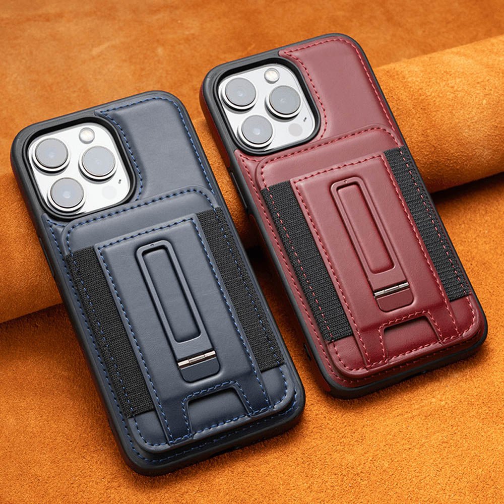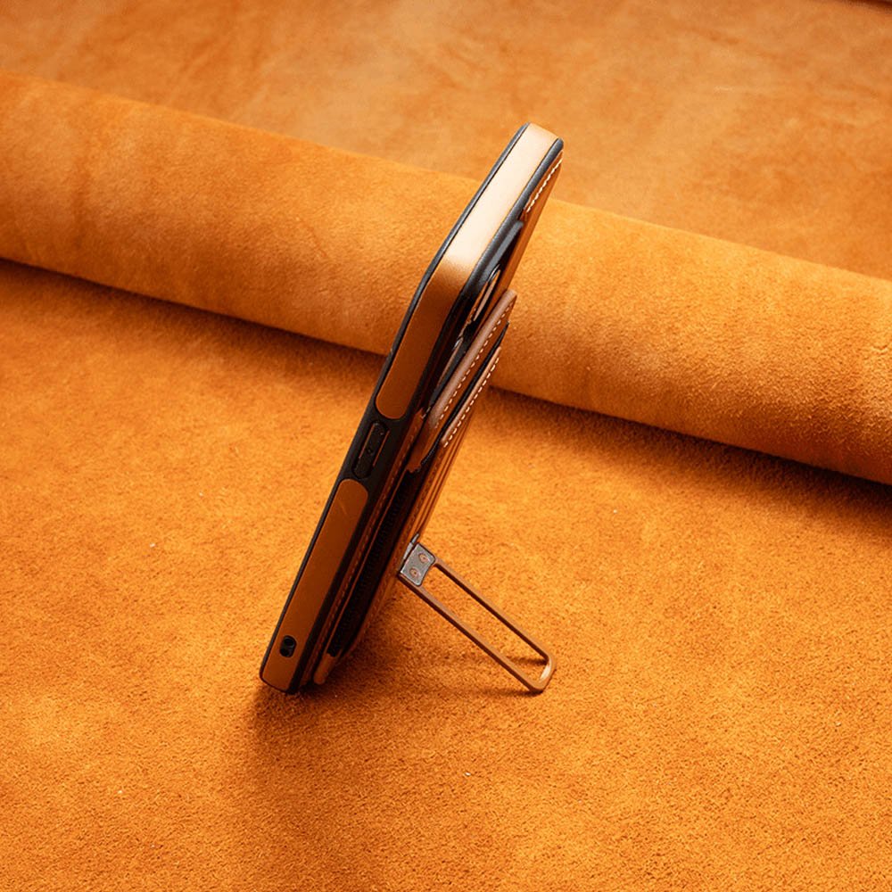 • Introducing the GripLex MagSafe Wallet iPhone Case, crafted from high-quality vegan leather, this case offers a sleek, professional look with a business-inspired, simple design. The case features an embossed texture that adds a premium touch, while the integrated magnetic bracket provides enhanced functionality, allowing for hands-free use of your phone. The sturdy MagSafe-compatible magnetic element ensures secure attachment without compromising convenience, making it perfect for use with magnetic car mounts and stands. In addition to its sleek design, the GripLex MagSafe Wallet iPhone Case comes with a built-in MagSafe card holder, securely attached to the case. This card holder adds a practical layer to the case, allowing you to conveniently store essential cards without the need for an additional wallet. The case is designed with versatility in mind, fitting snugly while providing easy access to all ports and buttons. Its compact design doesn’t block the camera and ensures your phone remains slim and easy to handle, making it the perfect combination of style, convenience, and functionality.
