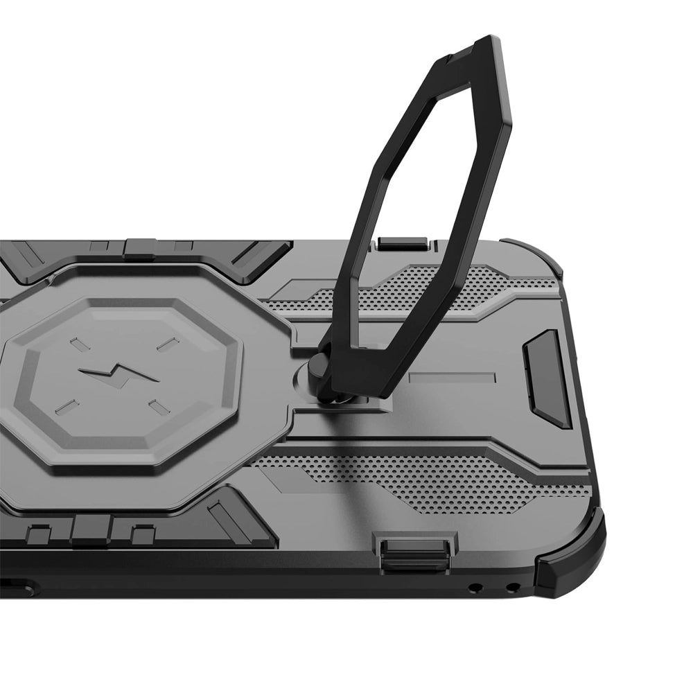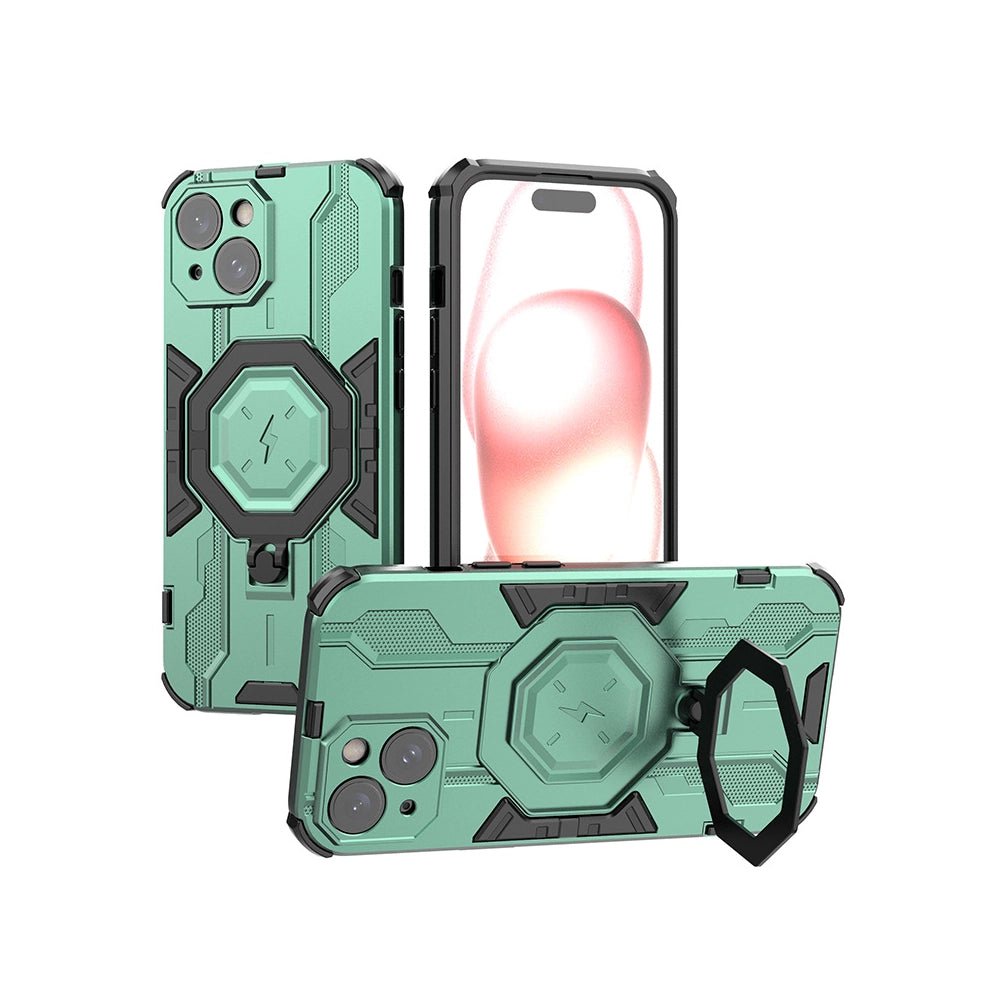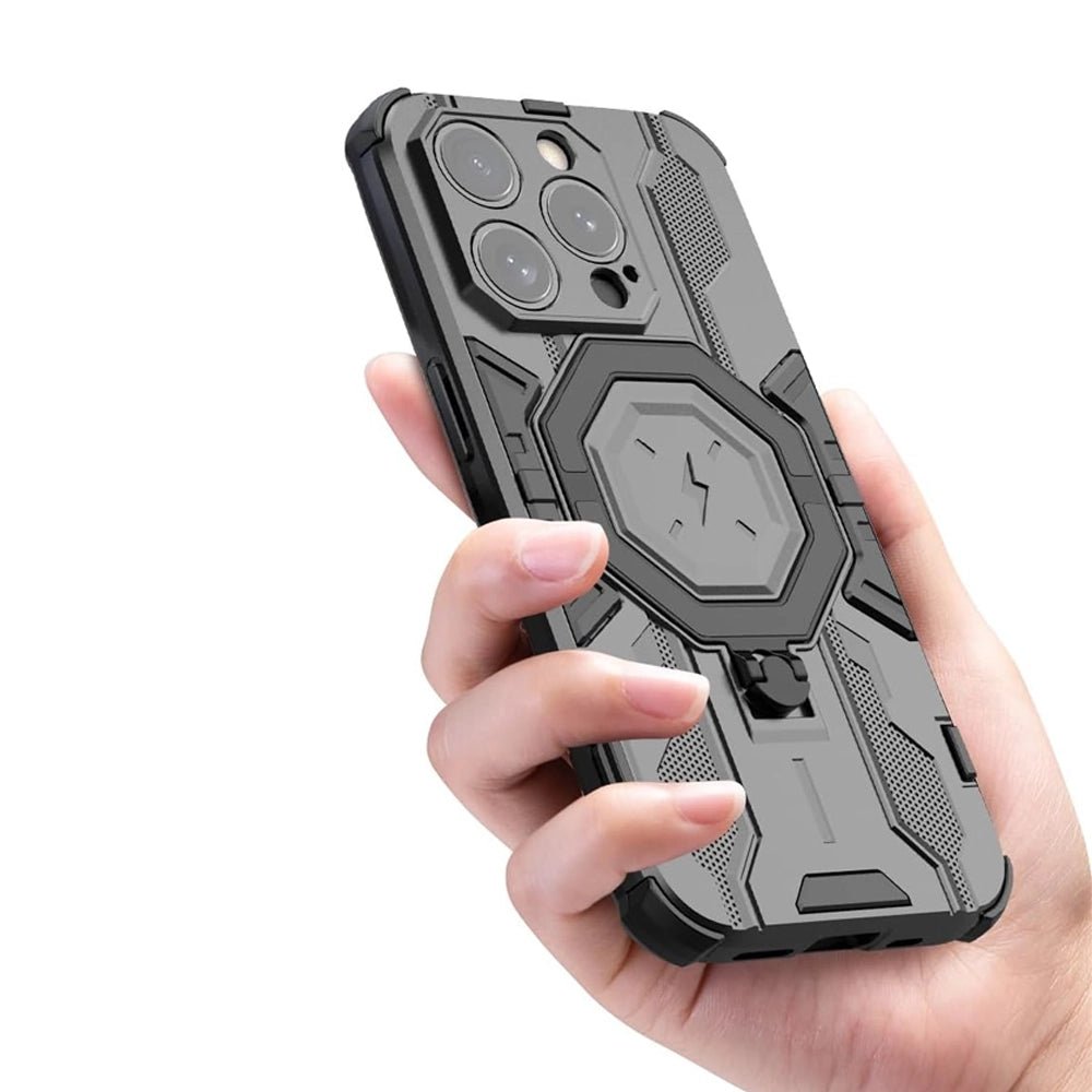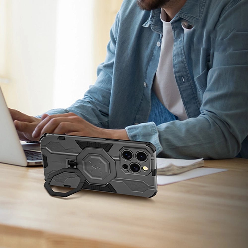 • The HexLink Stealth MagSafe iPhone Case combines a stand ring, sonic armor, and skin-friendly materials for ultimate protection and style. This case is not just fall-proof—it's cool, featuring an anti-fingerprint coating, anti-slip, and anti-sweat properties. Built with elastic TPU and hard PC materials, the HexLink Stealth is scratch-resistant, and impact-cushioning with four-corner airbags. The non-sensitive metal ring bracket offers 360° rotation, allowing you to switch between horizontal and vertical modes effortlessly. With elevated lens and screen protection, wireless charging compatibility, and a finger ring for added convenience, this case ensures your iPhone is both protected and stylish.