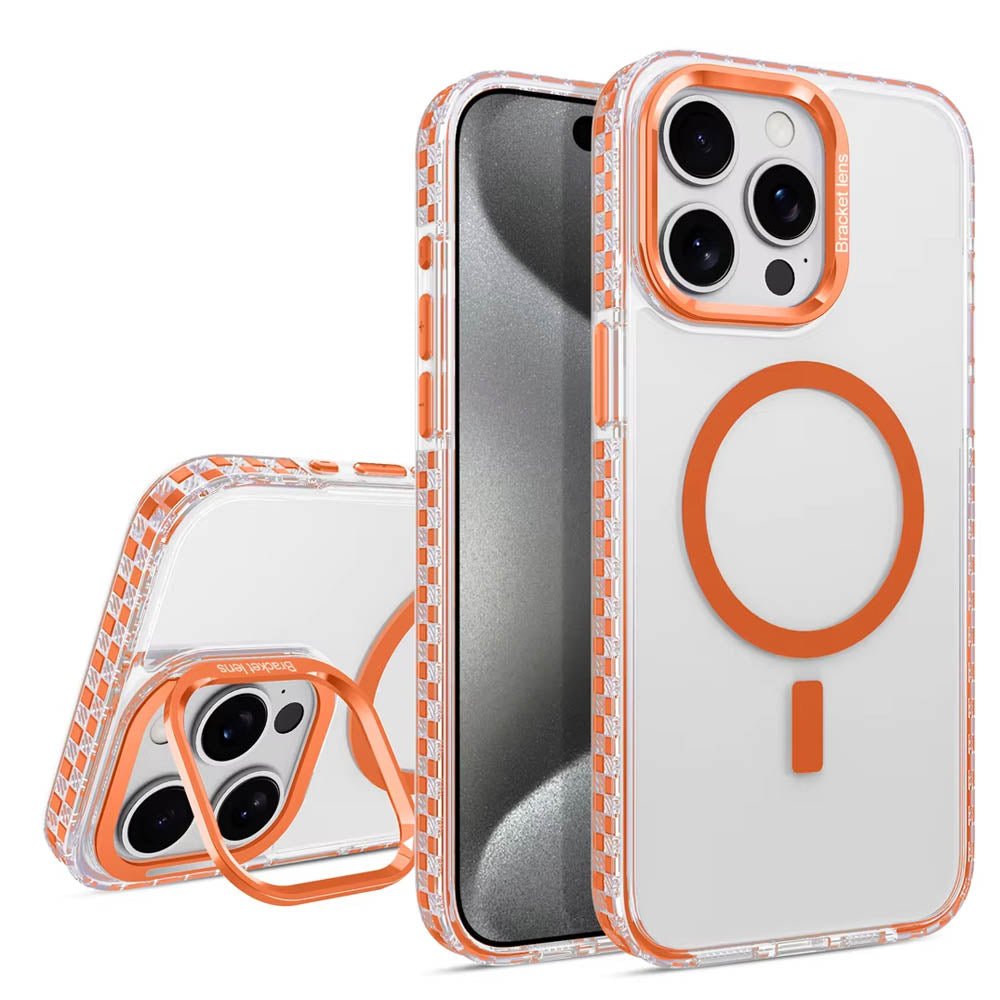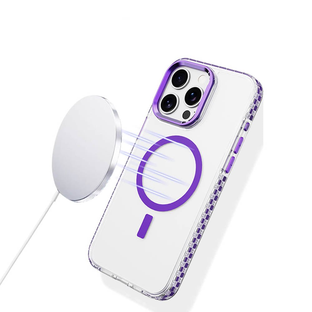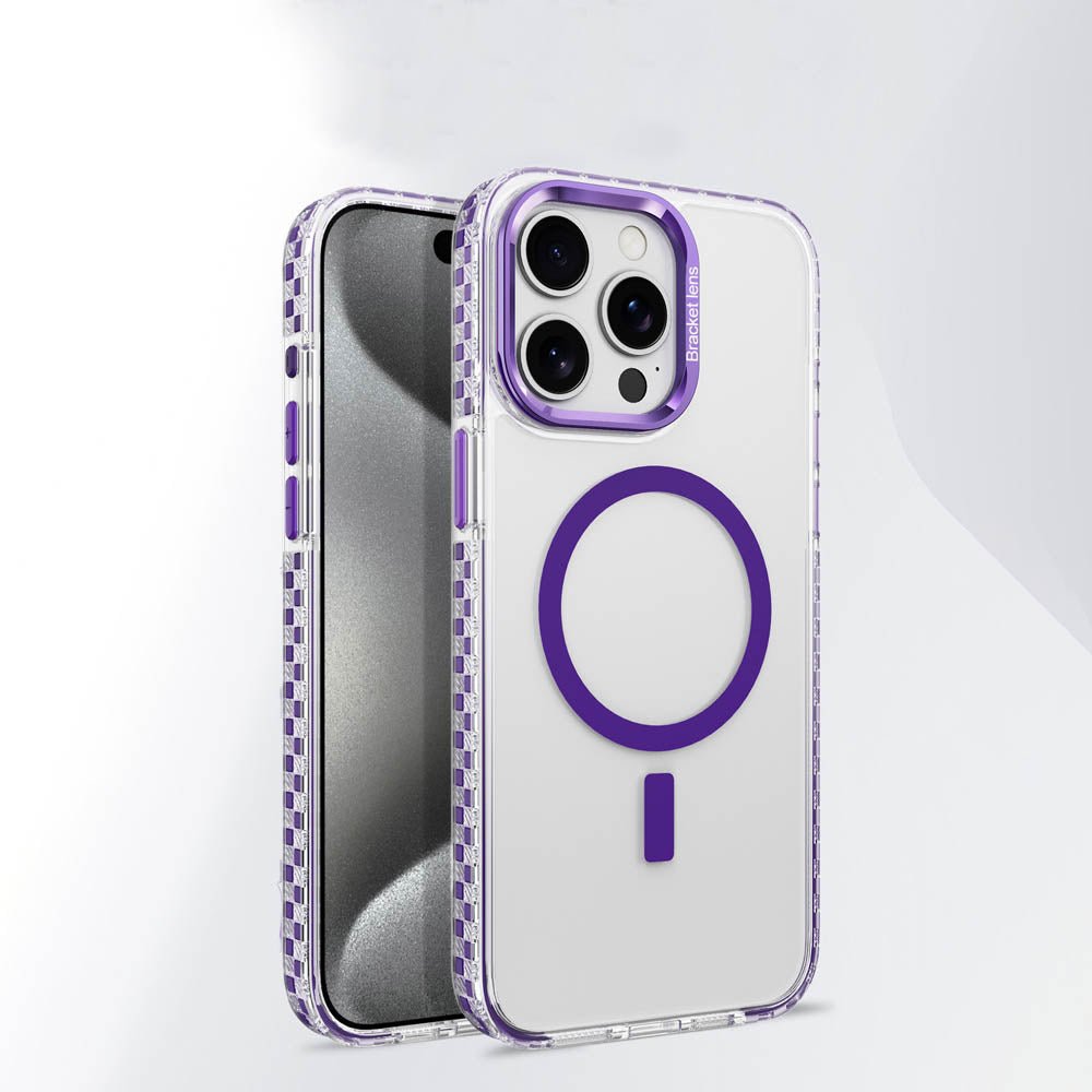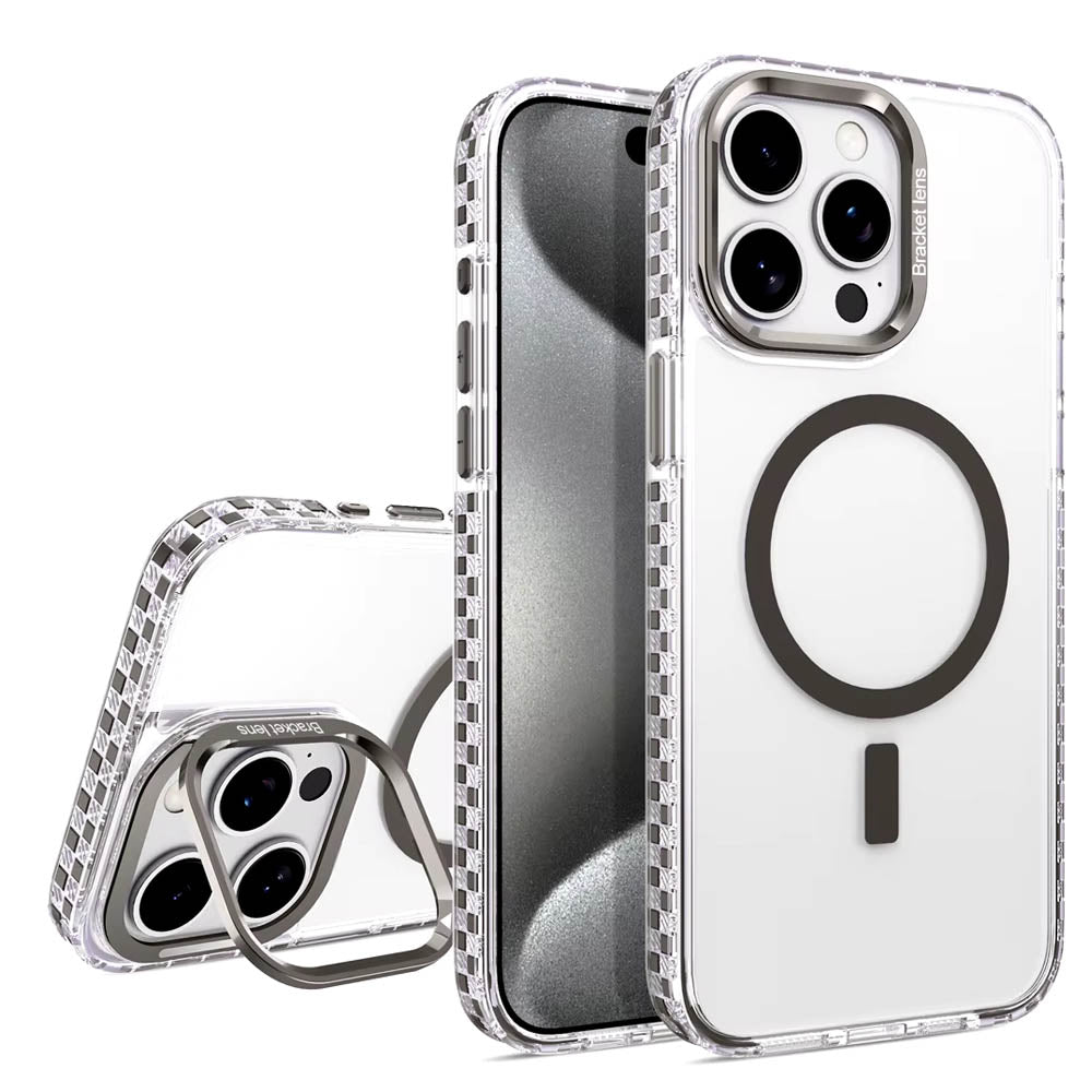 • Introducing the ShieldFlex MagSafe iPhone Case. This case features a built-in magnetic ring for effortless charging. Made with high-quality polymer materials, the case provides superior anti-yellowing properties and long-lasting transparency, keeping your phone looking as good as new. The ShieldFlex is designed with a multi-layer airbag buffer structure that offers advanced shock absorption and anti-fall protection. The all-inclusive alloy lens frame shields your camera, with a raised edge to prevent scratches, and the higher shell edge around the screen protects against breakage. Independent metal buttons are smooth and responsive, offering effortless interaction as if you're pressing bare-metal keys. The electroplated oleophobic coating adds a premium touch, resisting fingerprints and ensuring a clean, smooth surface even after prolonged use. Additionally, the ShieldFlex features an integrated stand with multi-angle adjustment, allowing you to prop up your phone for hands-free viewing or photography.